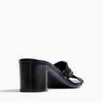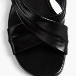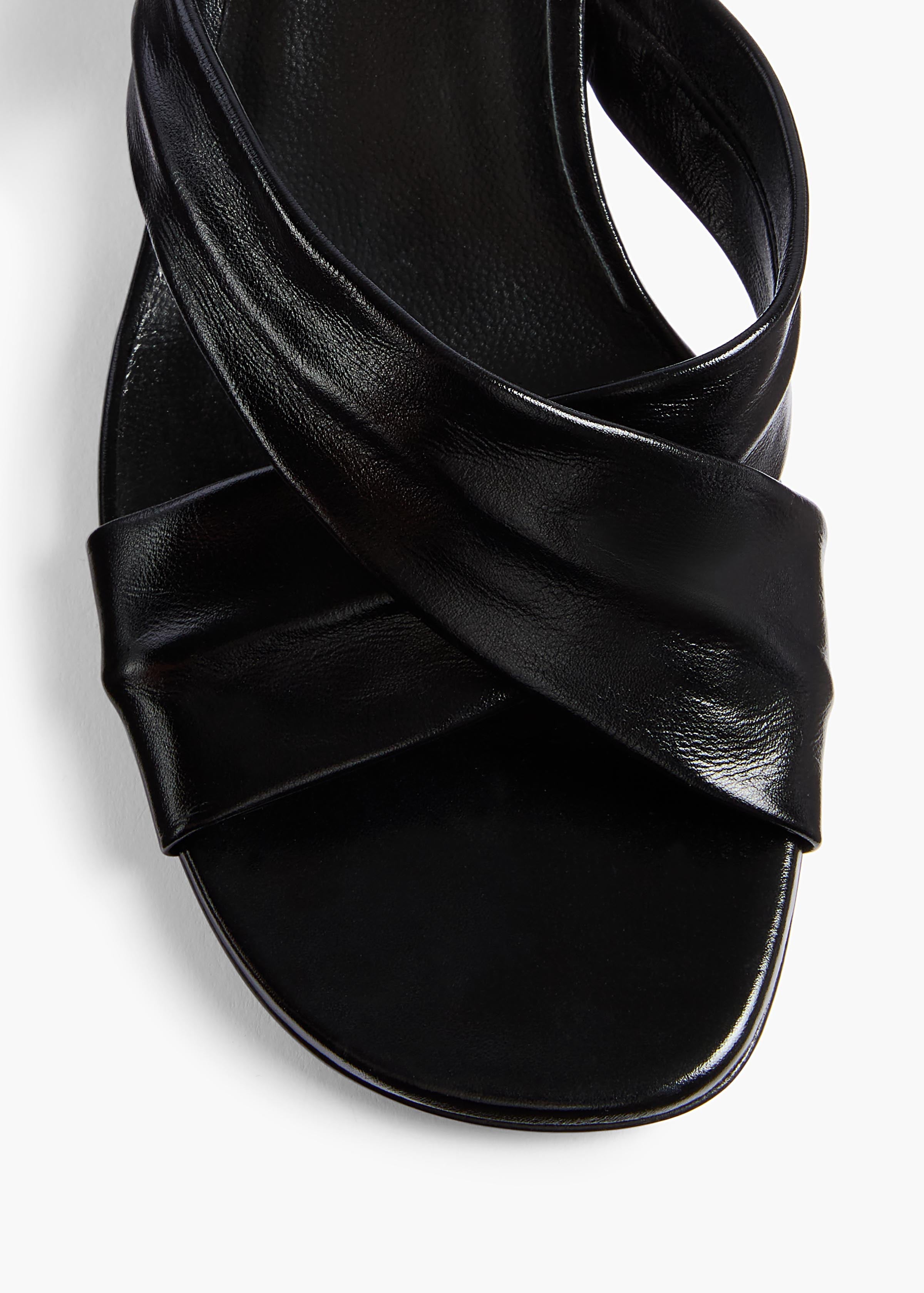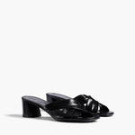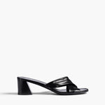 Spotlighting exquisite materials such as glossy Italian calfskin, this softened variation on a classic, block-heeled slide is defined by broad, cris-crossed straps designed to both hug the foot and drape over it.