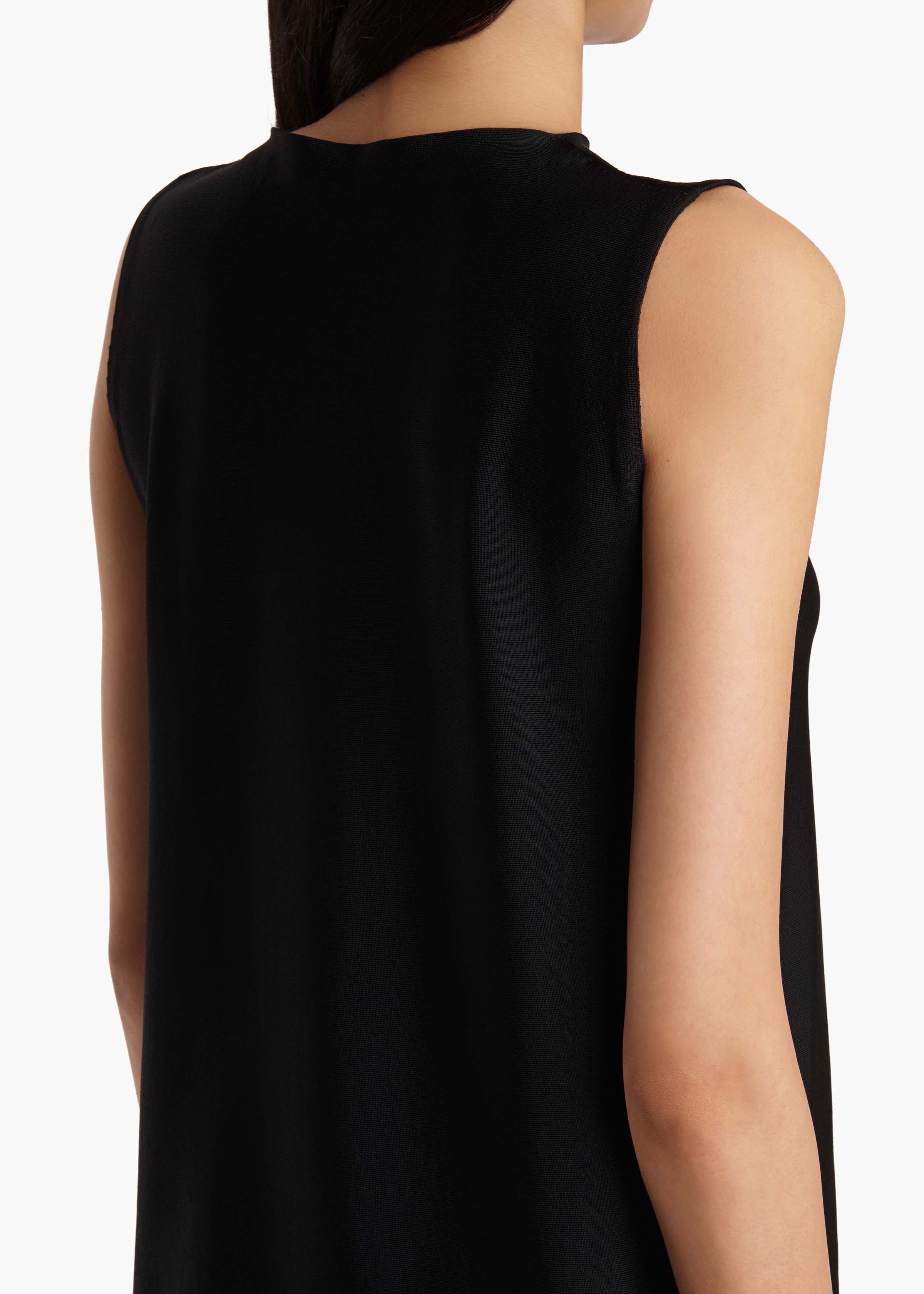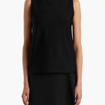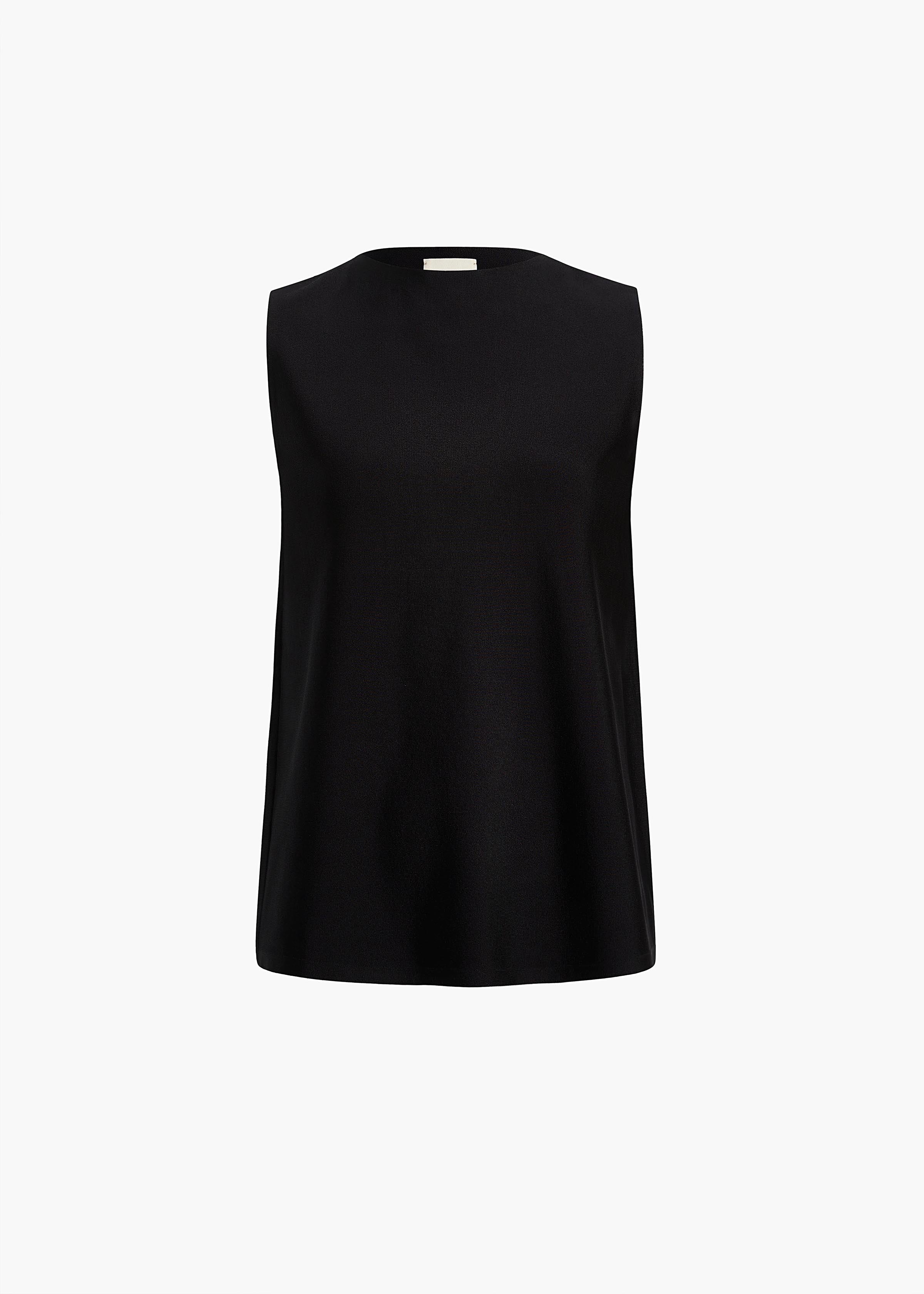 An easy-fitting, jersey-stitched knit top in fine Italian viscose selected for its sleek, smooth character and modern sheen, which imparts an almost iridescent quality. Sleeveless silhouette traced by tubular seaming at sides.