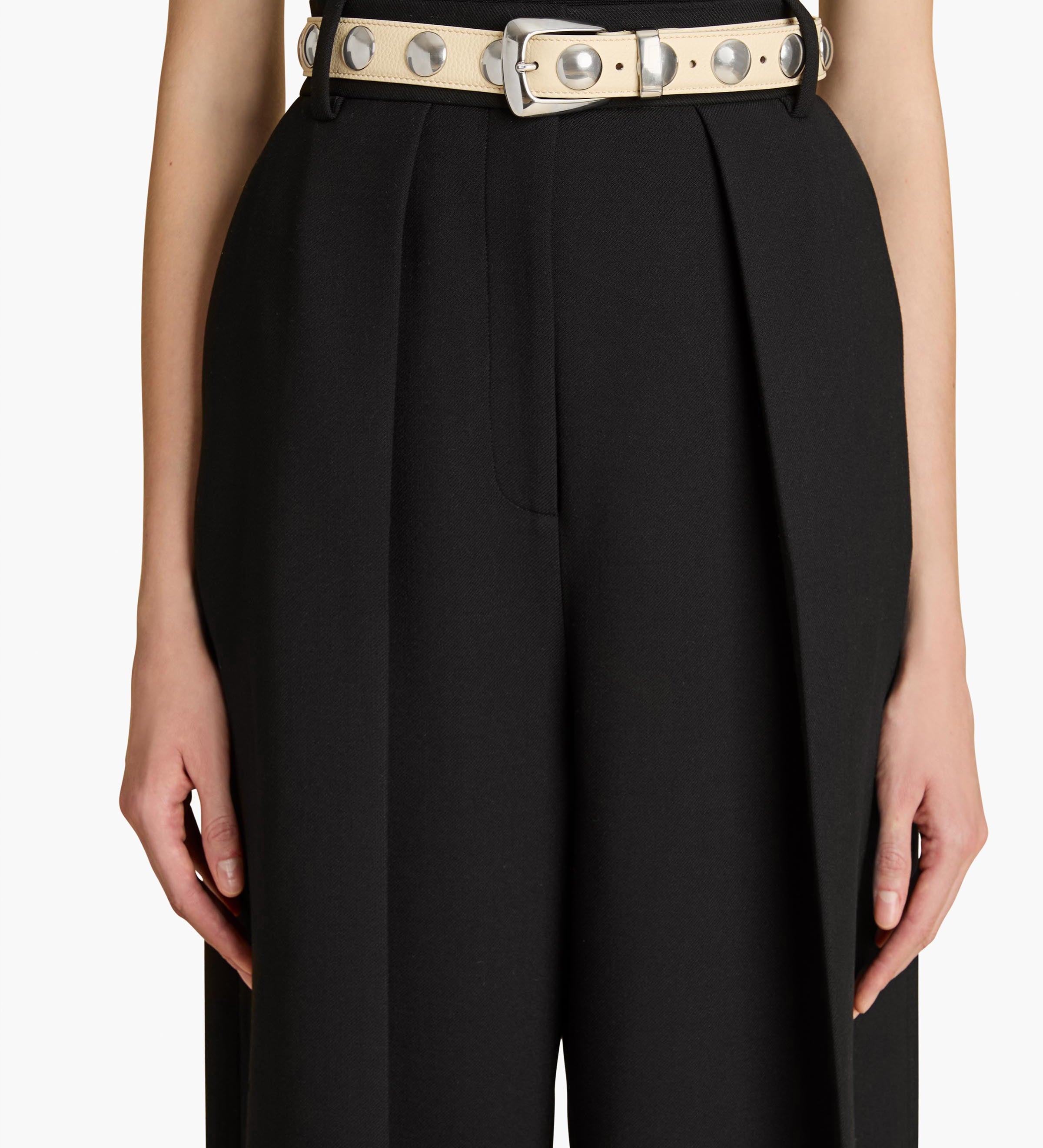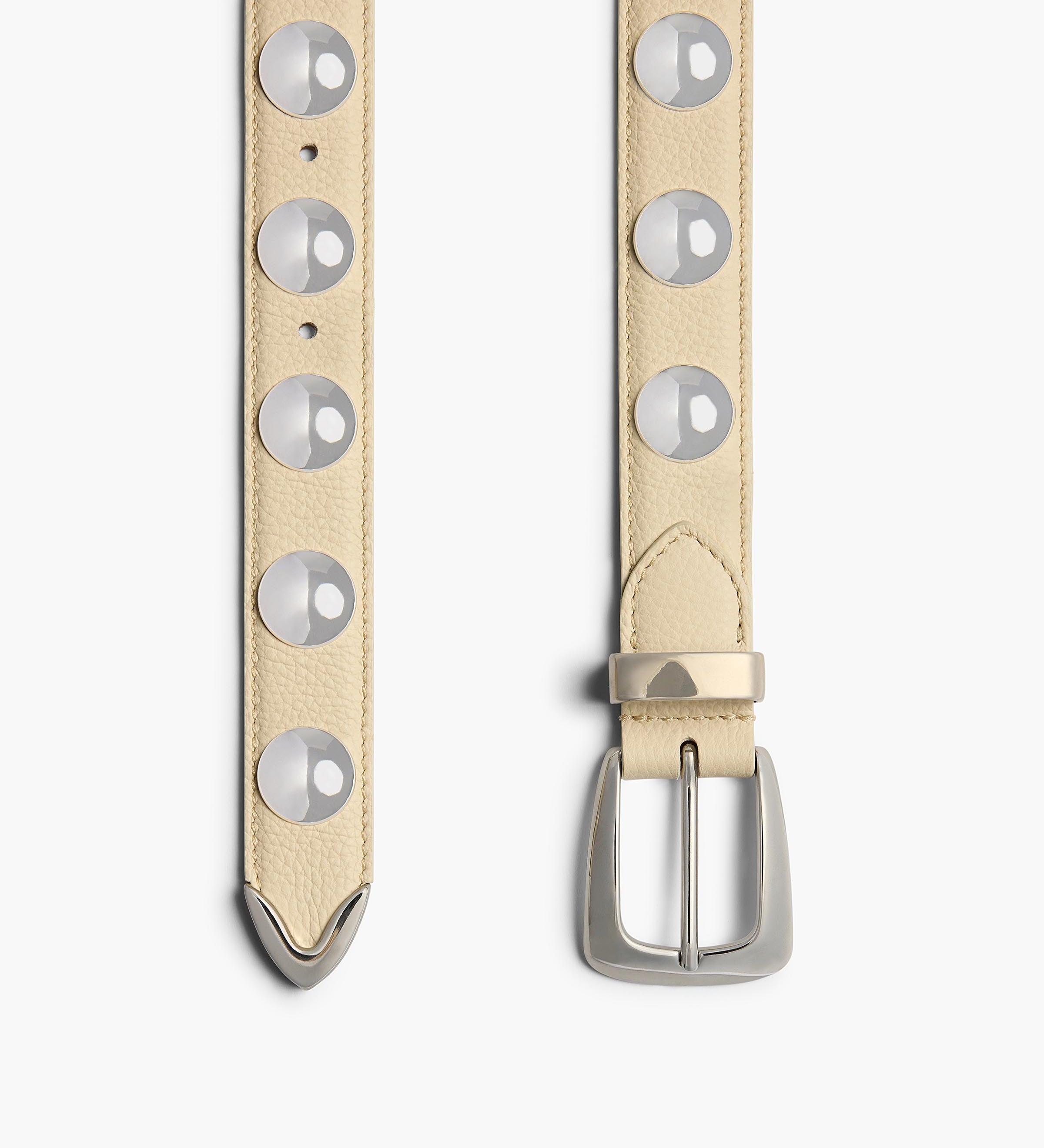 Khaite - Benny Belt with Studs in Dark Ivory Leather and Silver