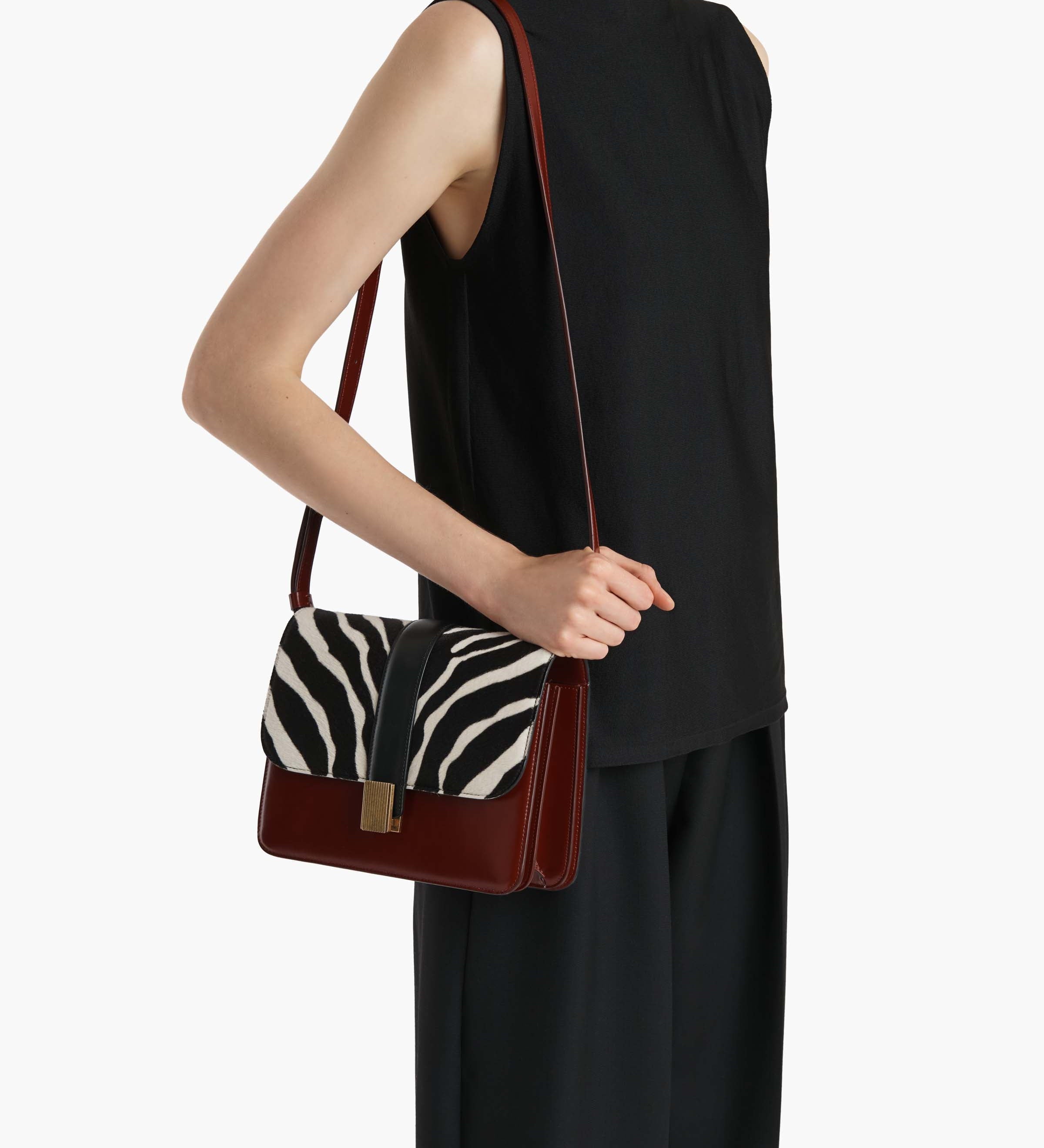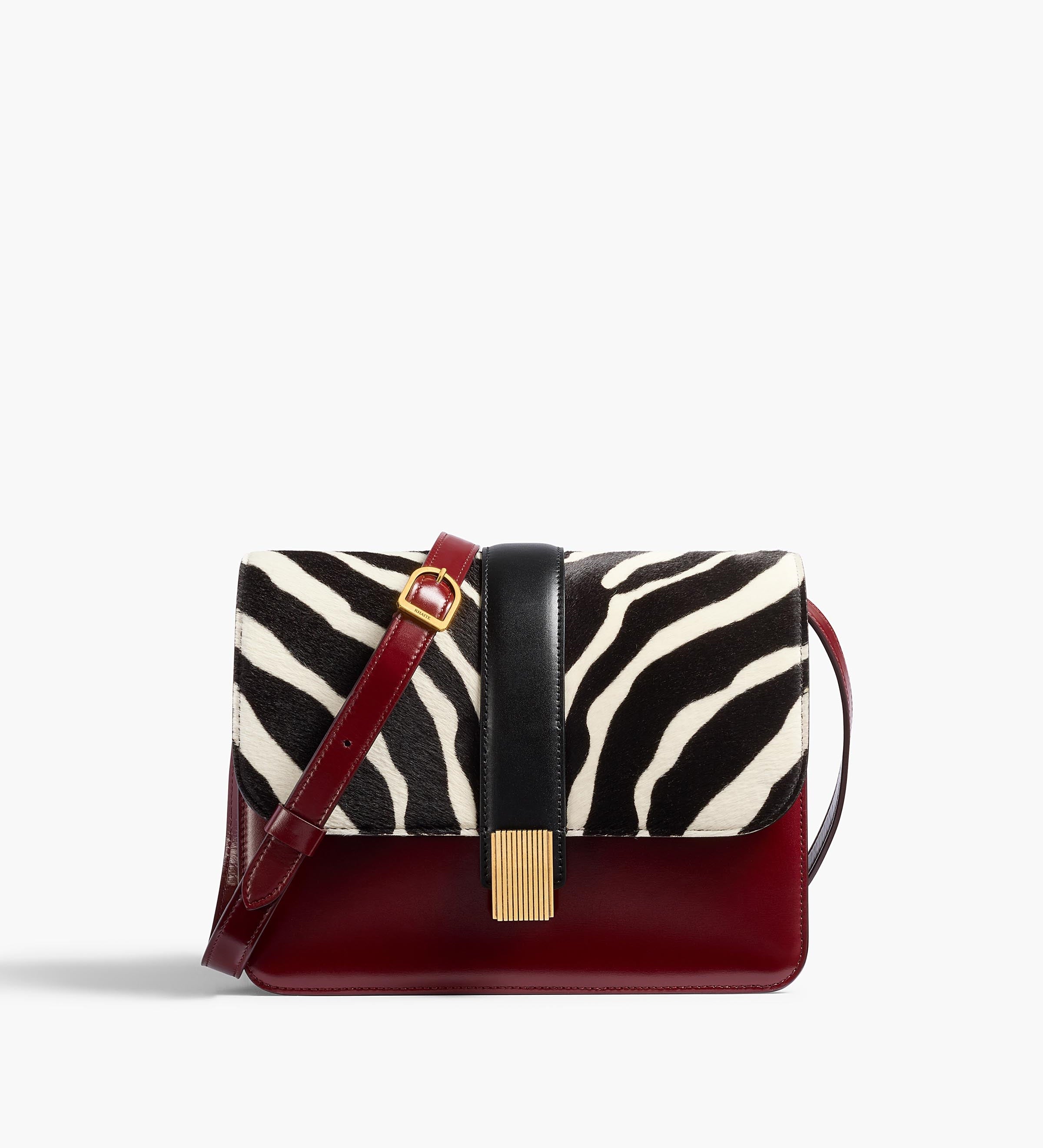 Khaite - Blake Crossbody Bag in Zebra Haircalf and Oxblood Leather