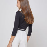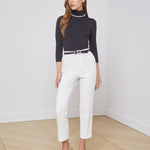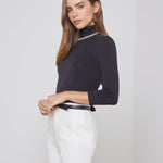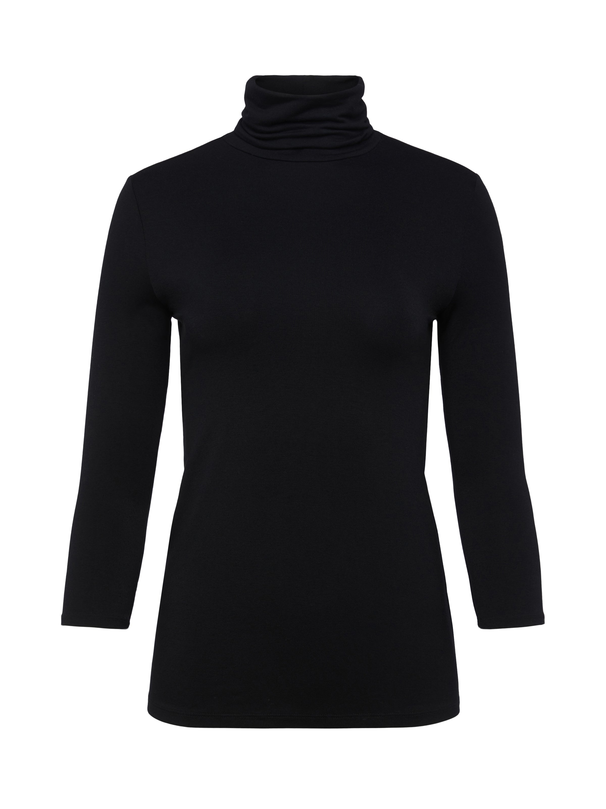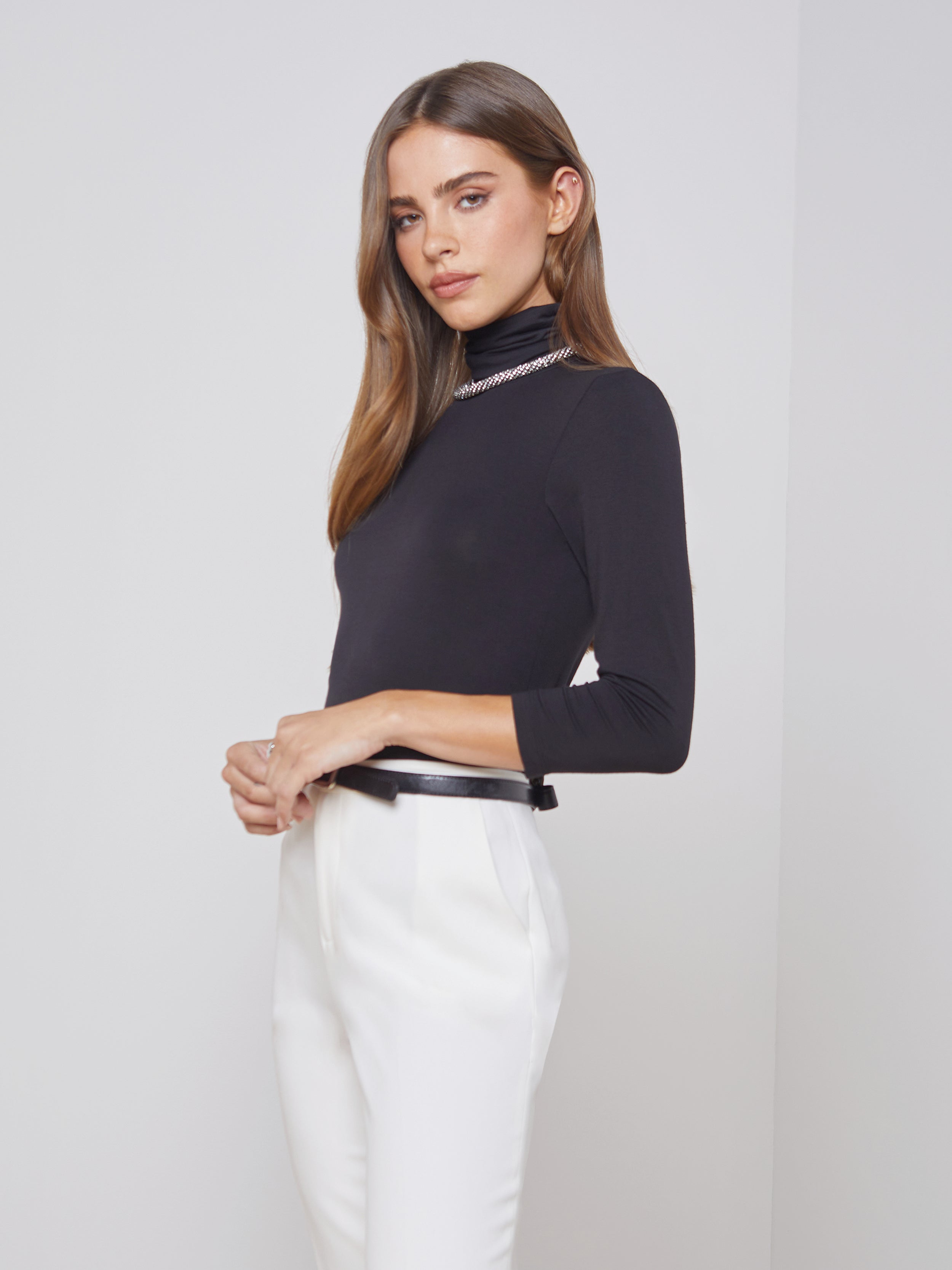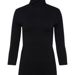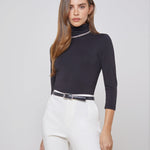 An essential, slim-fit black turtleneck with a three-quarter length sleeve. Ultra-soft luxe microfiber fabrication provides supreme comfort while smoothing the silhouette. Aja pairs and layers with easily with a blazer and jeans.