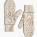 Lusciously soft cashmere mittens made memorable by a Fair Isle pattern that incorporates hearts and stylized blooms. Cuffed by tonal ribbing.