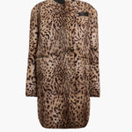 In leopard-spotted rabbit felt accented by black calfskin, this boldly shouldered, richly textured coat takes cues from menswear, only to reveal a high, sculpted back. With peak lapels, chest pocket, and side pockets.