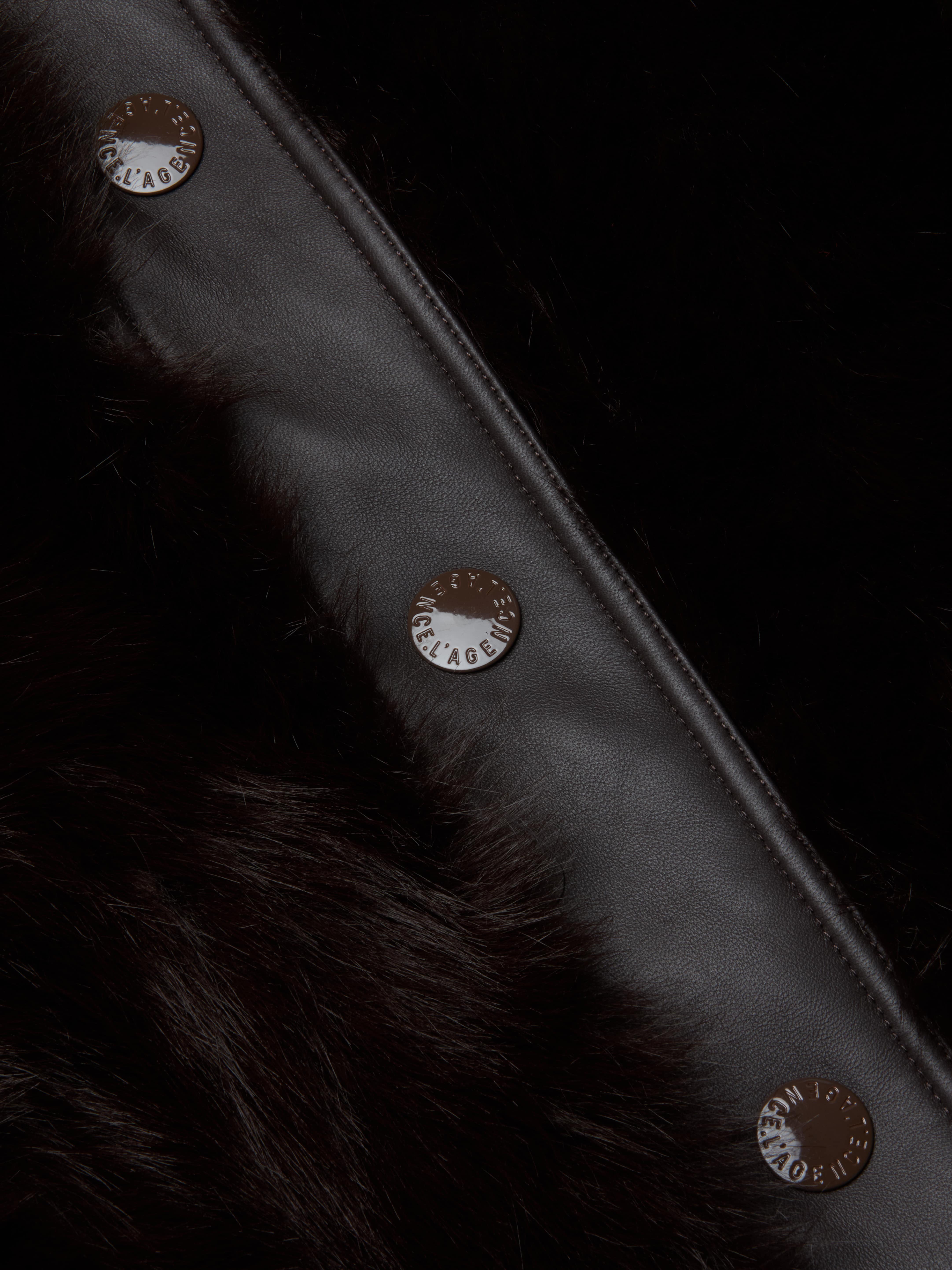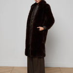 Outerwear with impact. The Irisa faux fur coat with leather trim delivers instant sophistication in a rich chocolate hue that feels just right for fall and beyond. The plush, ultra-soft texture and longline silhouette offer cozy warmth while elevating even the most casual of looks. Throw it on and you're immediately glamorous, polished, and out the door.