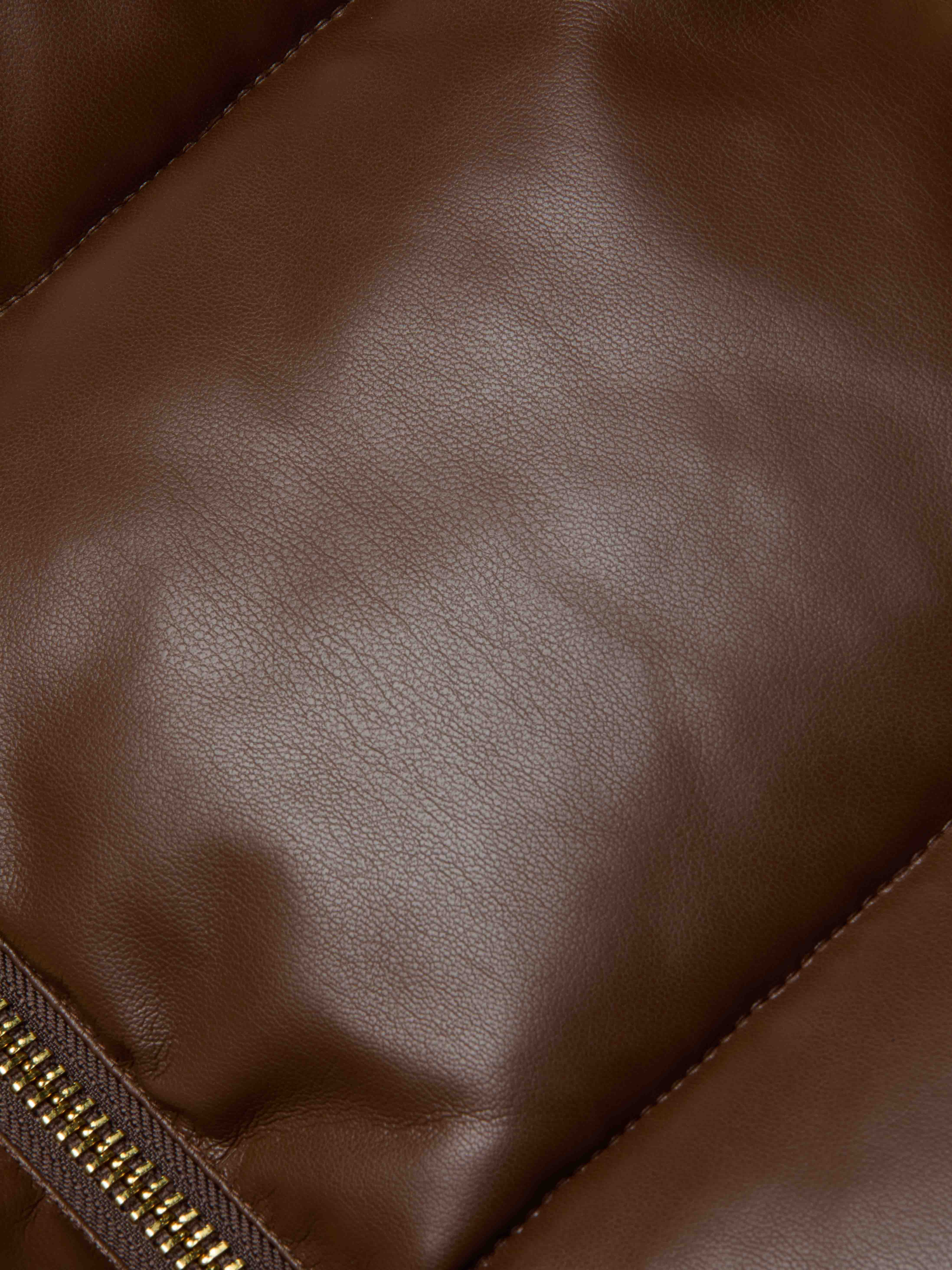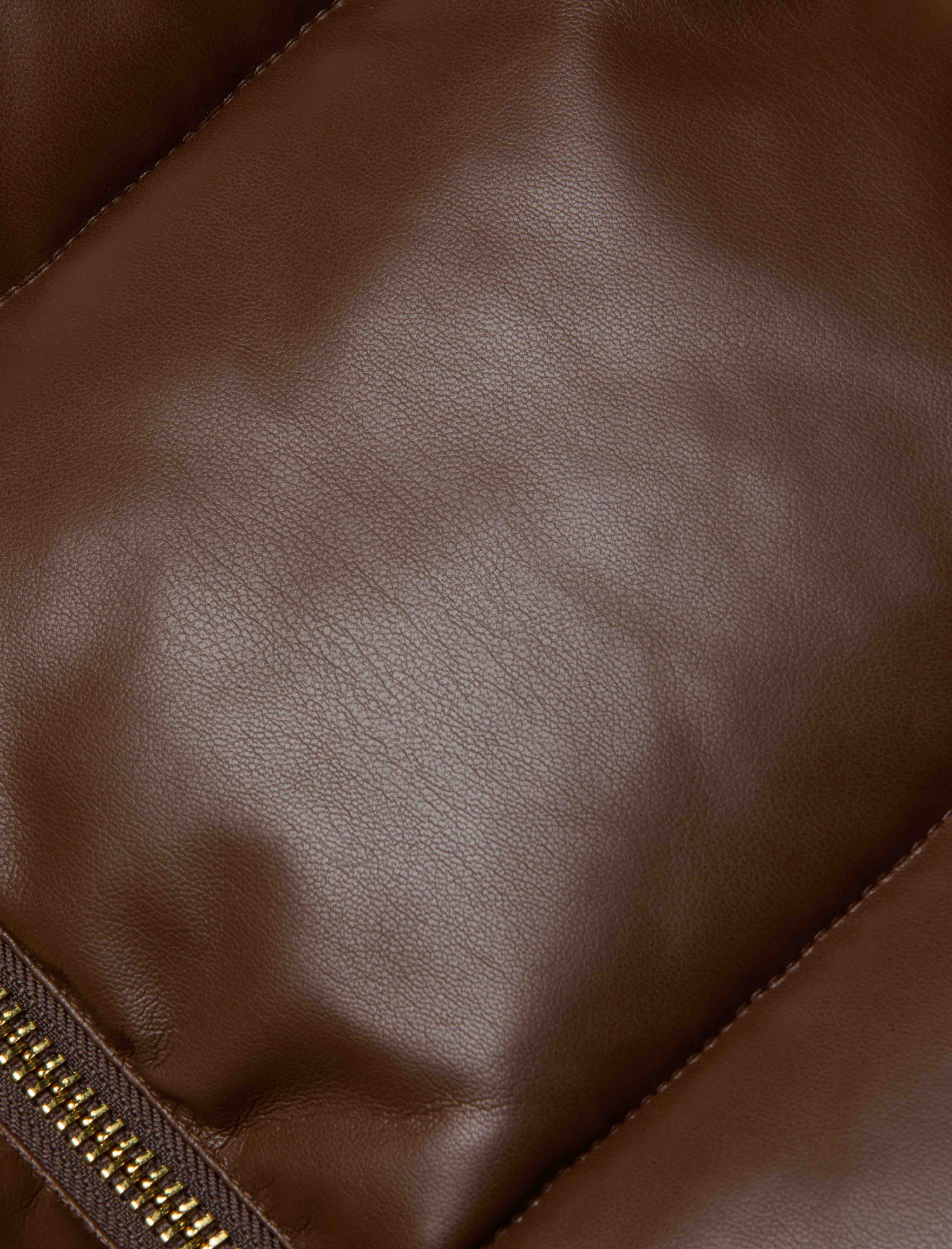 Crafted with high-gloss vegan leather and subtle structure, the Larsen puffer jacket merges volume with sophistication. Gold-tone hardware punctuates the design, adding a luxe finish to the minimalist silhouette.