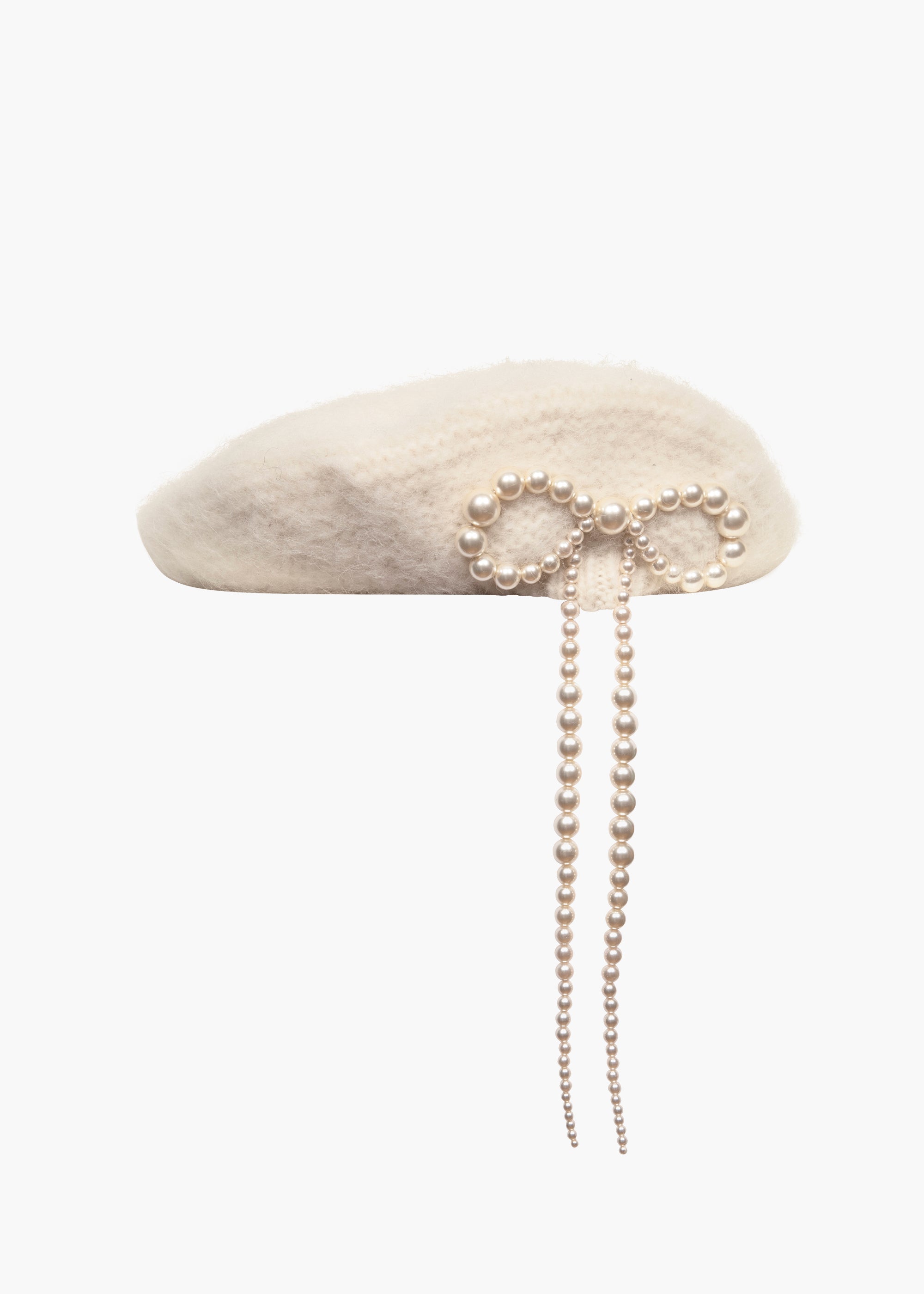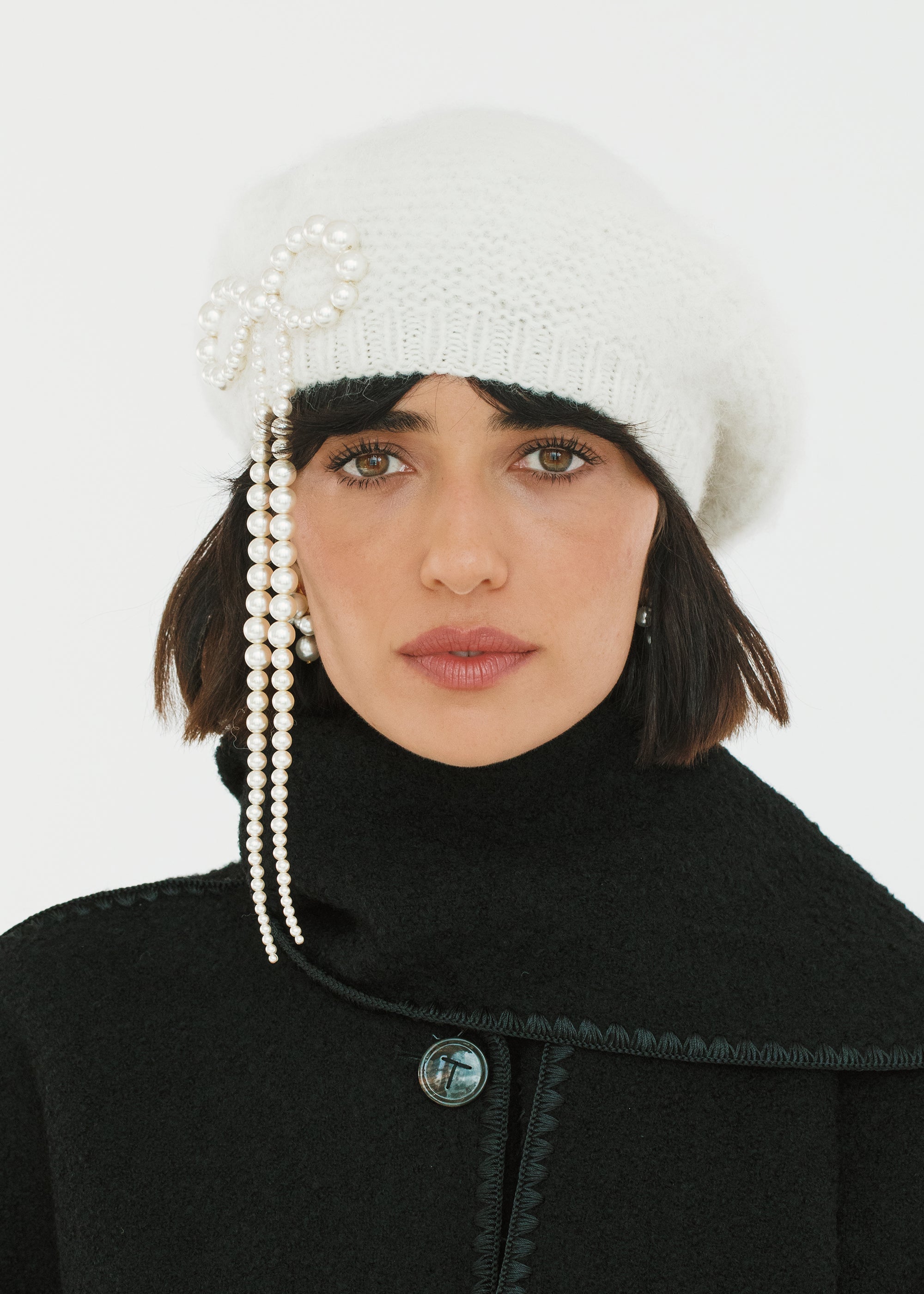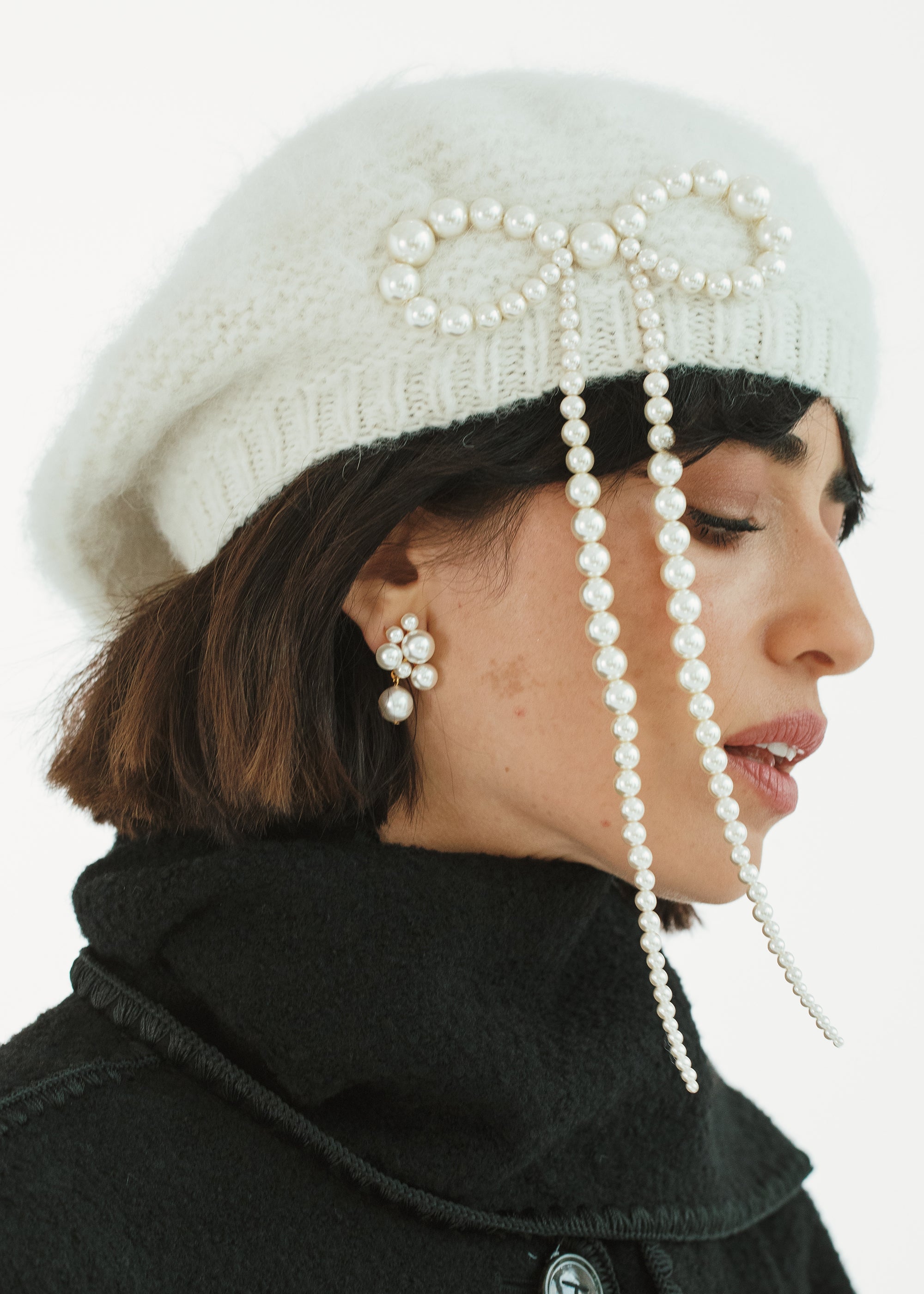 The Presley Bow Beret is so strikingly stylish, you'll almost forget how functional it is, until you feel its warmth. The ultra-soft alpaca yarn has a unique ability to insulate while maintaining continual comfort. Made in New York, it's adorned with a bow detail, formed by pearls fluctuating in size to create the sublime illusion of movement.