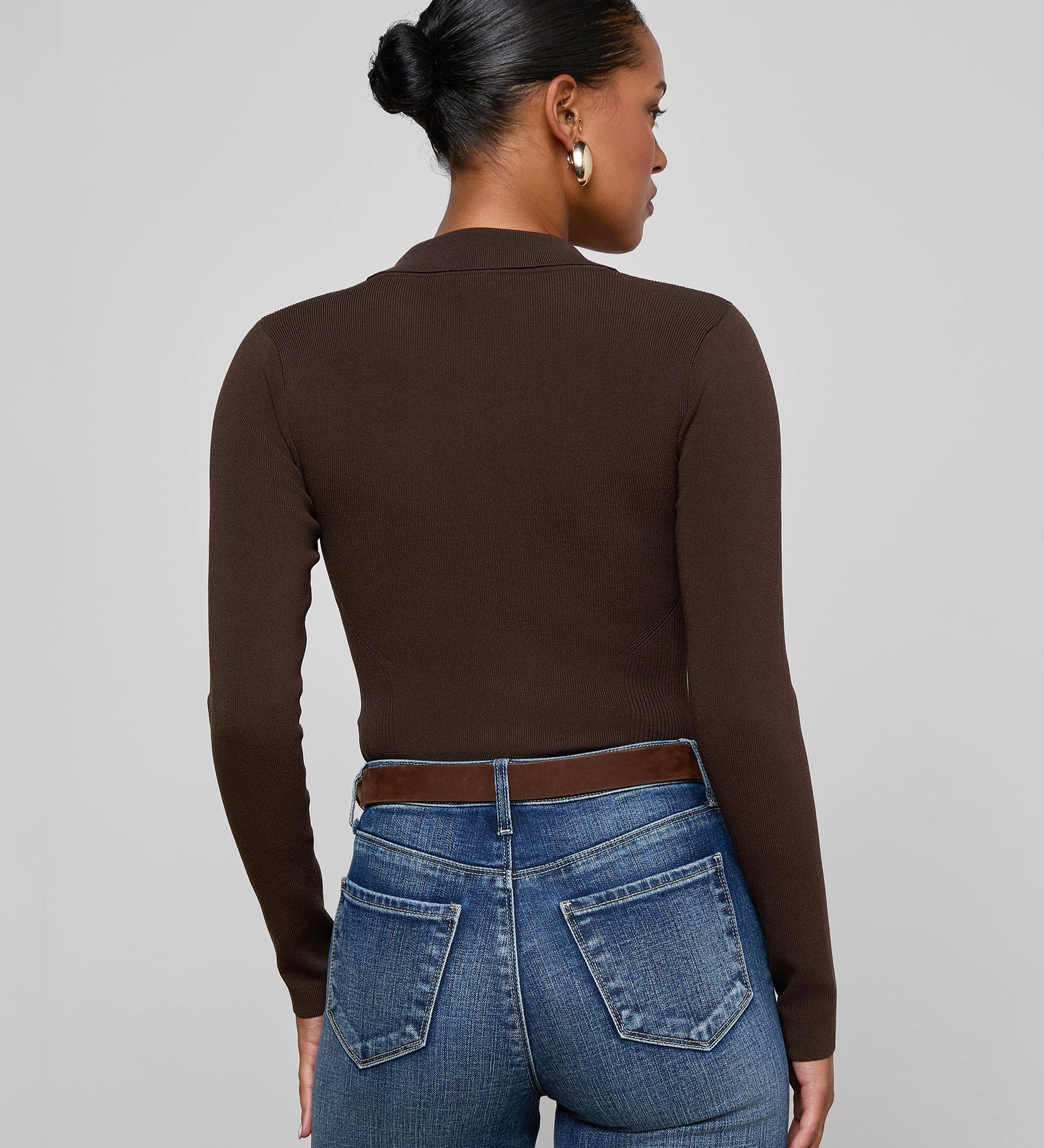 Clean lines against white snow. A knitted sweater under a tailored jacket. Gloves worn, not styled. Pieces chosen for cold mornings, mountain air, and long lunches that turn into late afternoons.