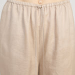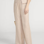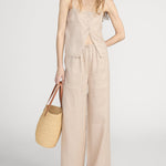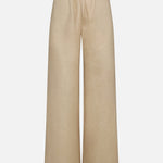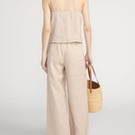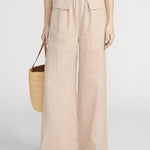 A relaxed wide-leg pant cut from lightweight linen. Designed with a pull-on elastic waistband and drawstring tie for an easy fit. Fluid drape and full-length silhouette.