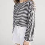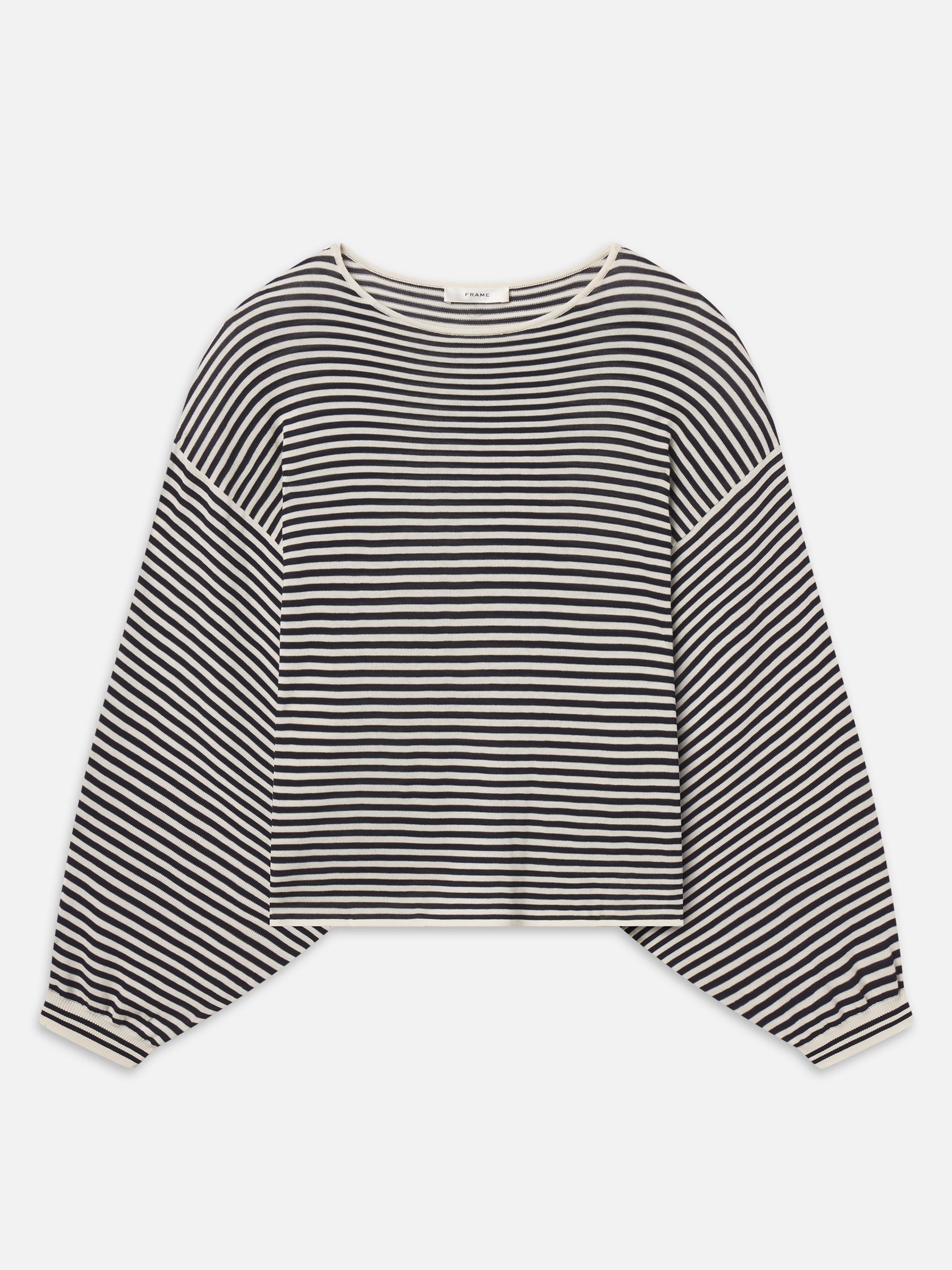 An easy, oversized sweater in a soft striped knit. Designed with a wide neckline, dropped shoulders, and voluminous sleeves for a relaxed drape. Effortless and easy to layer.