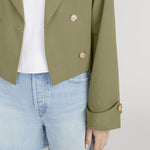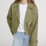 A cropped take on the classic—lightweight and finished with a button-and-belt closure. Tailored with added volume through the arms and body for an effortless fit. Wear it belted for a more polished look.
