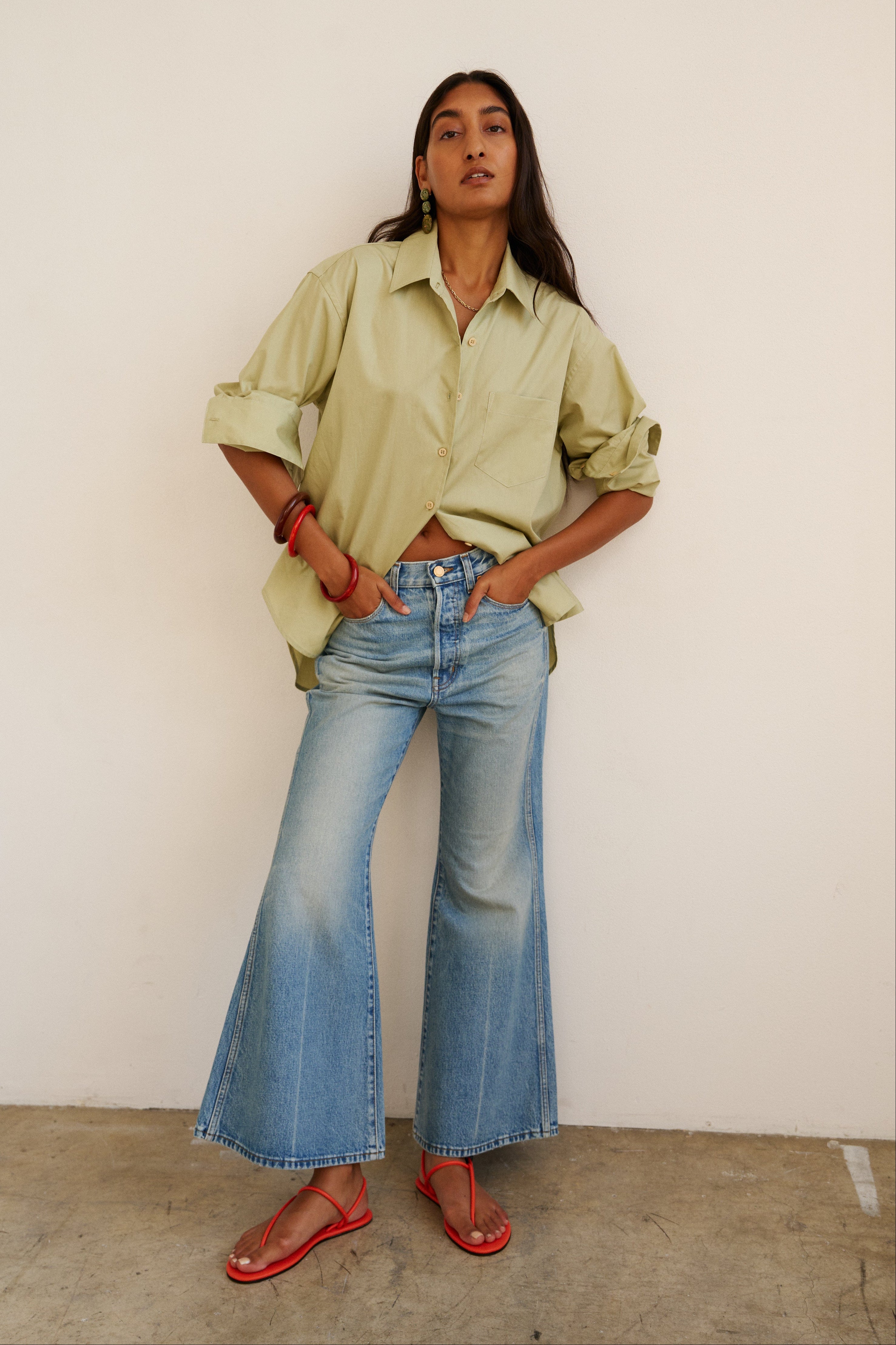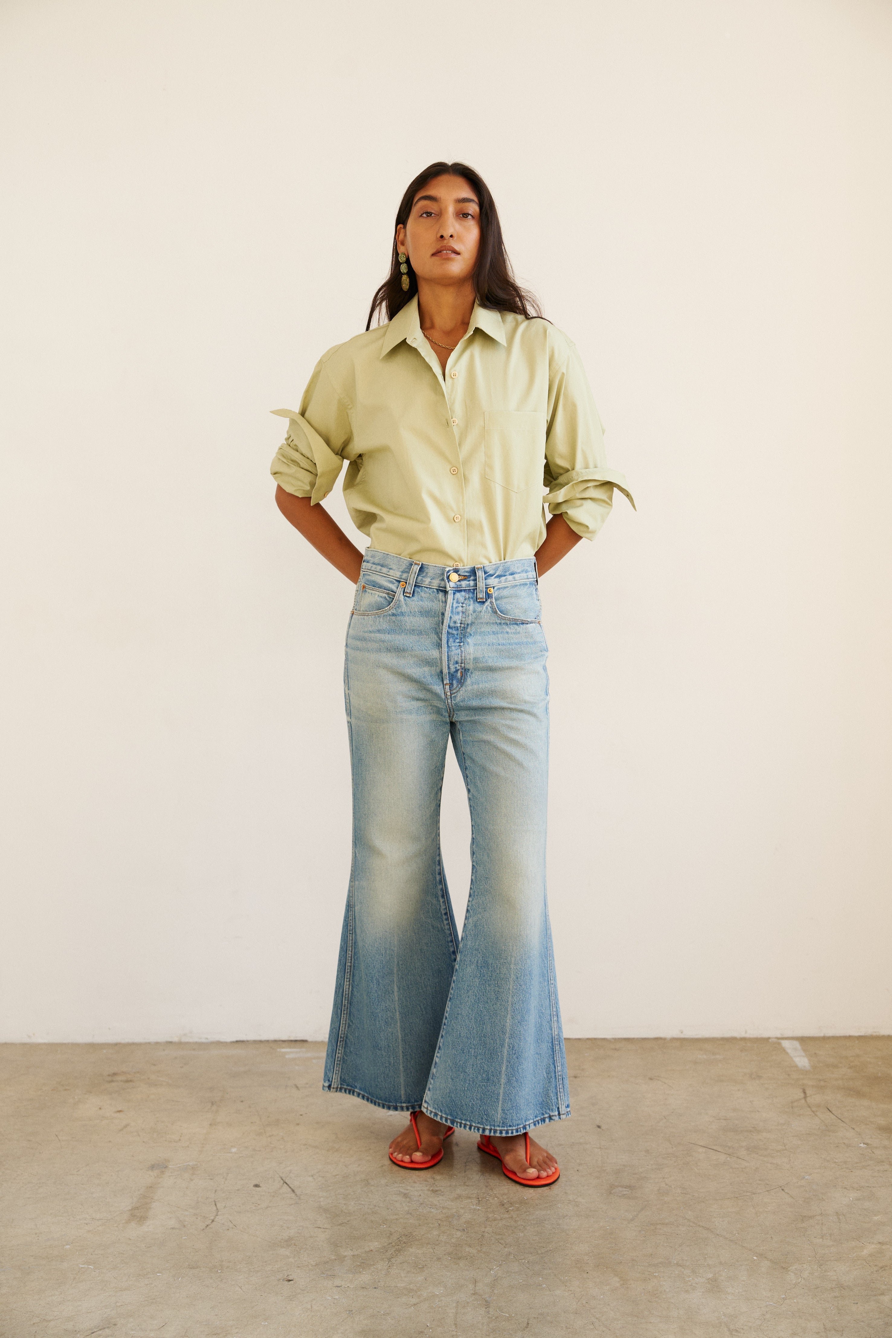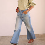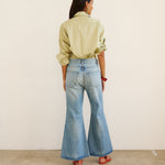 It’s all about the 70’s in these. Straight from Woodstock, but the kind with a little slouchy ease built in. These are designed to be ankle length, a slouchy rise and sit mid rise.
