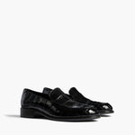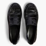 A menswear classic refined by a feminine touch. Crafted in Italy of rare and robust alligator skin distinguished by an enamel-like sheen. Rounded-toe silhouette with a roomier vamp. Details include fine-line rolled piping and the hint of a stacked heel. Signature staple detail at backstay.
