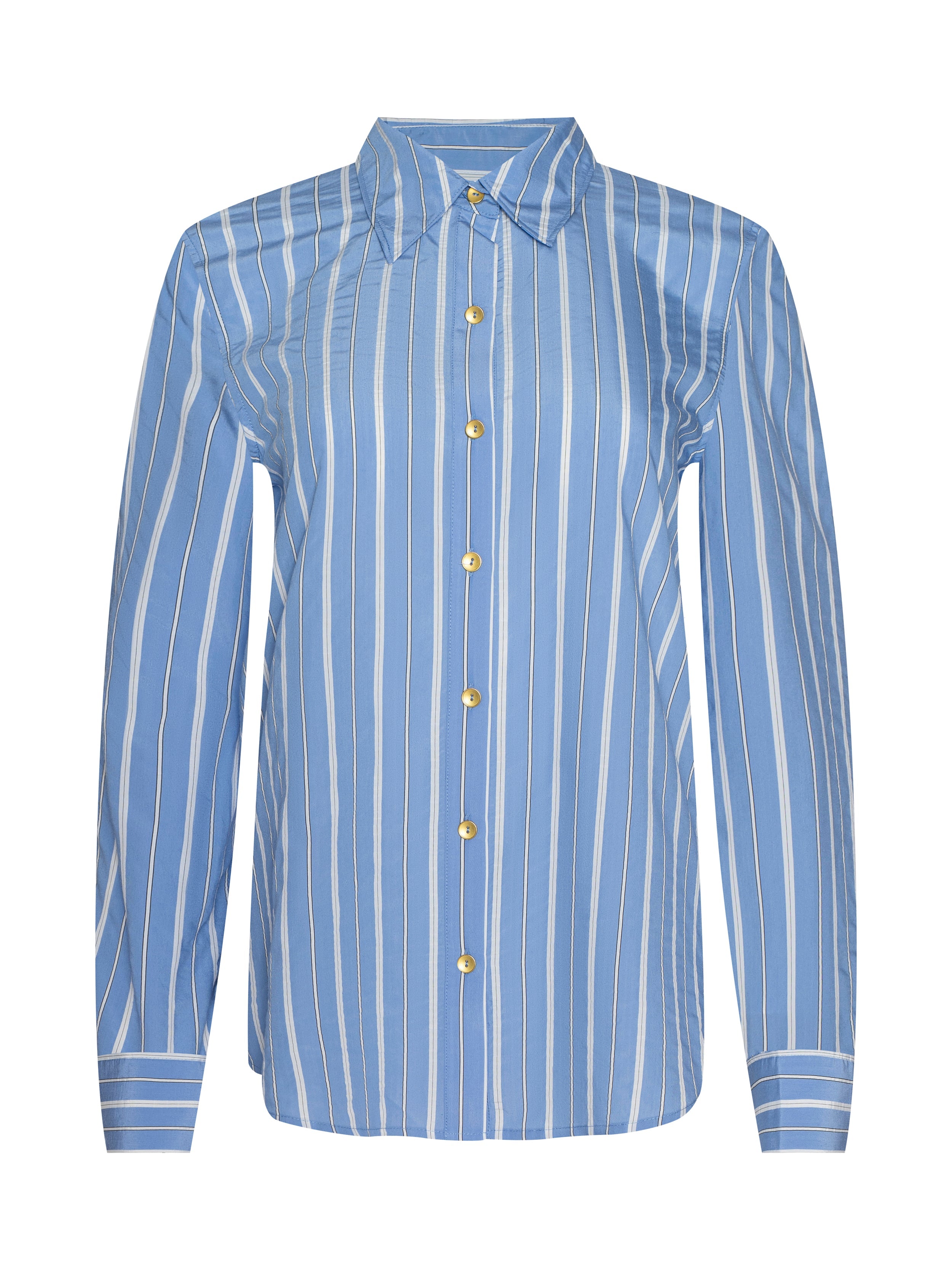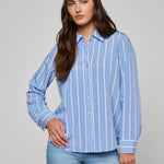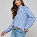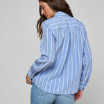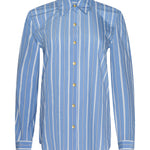 Our classic button-down shirt is back for the season in blue with contrasting white stripes. Designed with an easy relaxed fit, Ellery is the blouse you'll reach for every year.