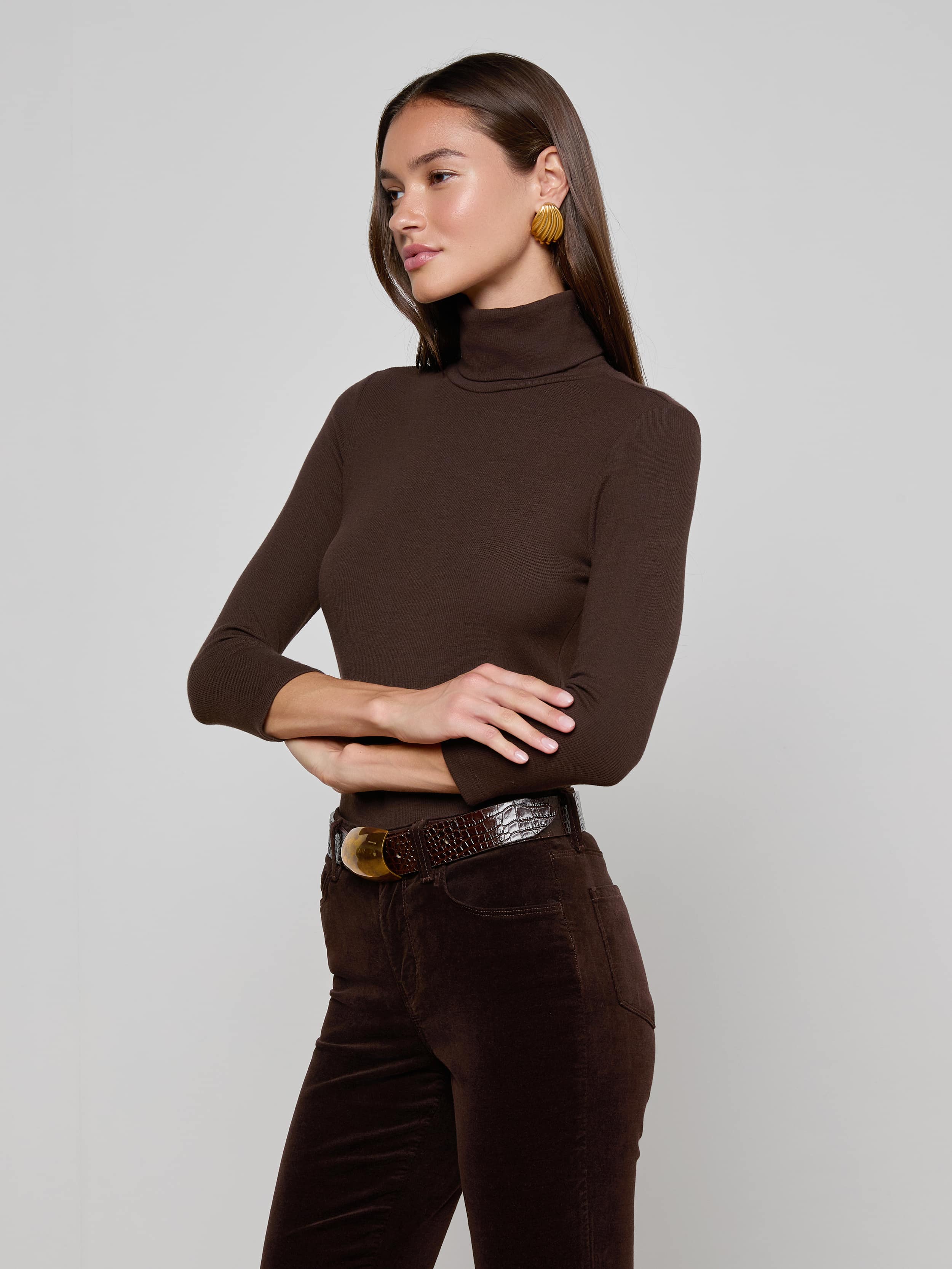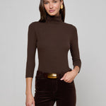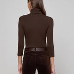 Our essential turtleneck top crafted from our super soft stretch modal and finished with three-quarter length sleeves. Perfect for layering or wearing alone. Now in coffee brown.