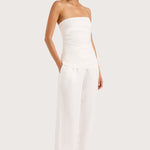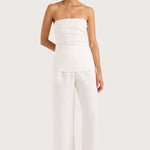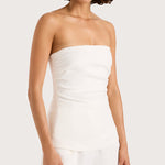 A signature FAITHFULL silhouette, reimagined with new elevated details and designed from a 100% European Flax® linen fabrication. It is a semi-fitted strapless top with gathered detailing at the sides and a shirred back panel for additional stretch. Offered in a classic white colourway and cropping just below the hips, it is the perfect companion to pair with a matching pair of trousers or skirt like the Stevie Trouser.