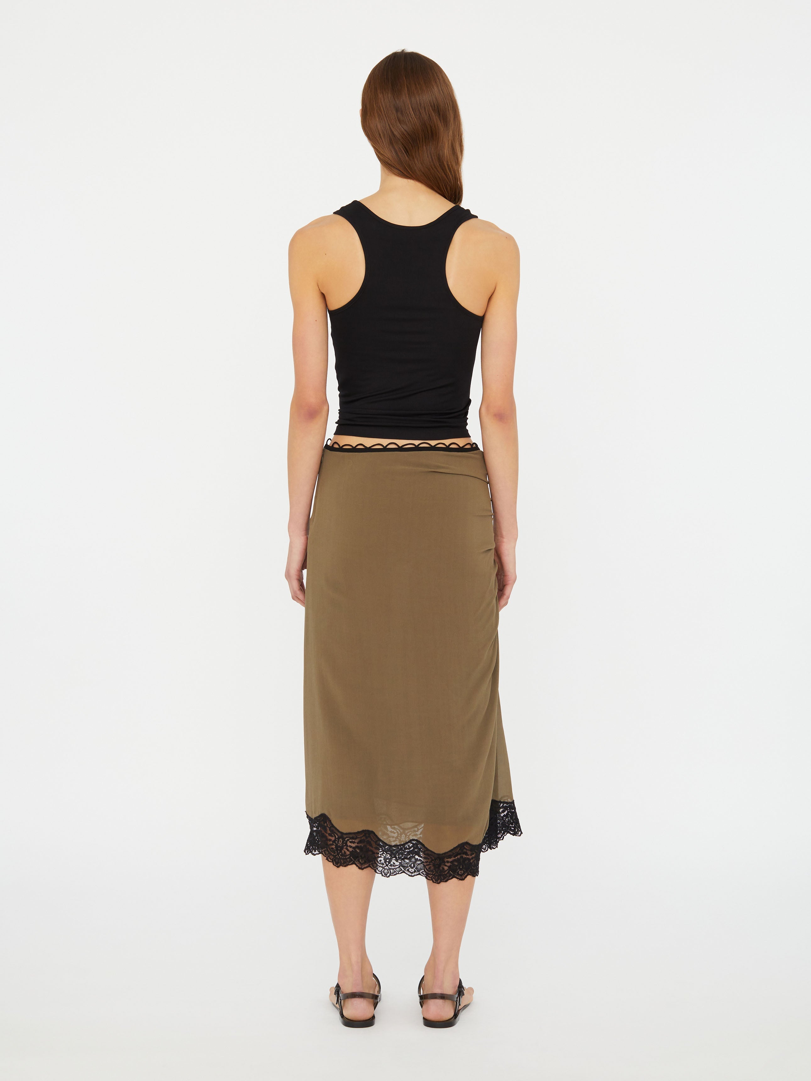 Codes of everyday wear spark curiosity through fine rib that stretches with ease to the body whilst curved lace inserts organically trace across the bust.