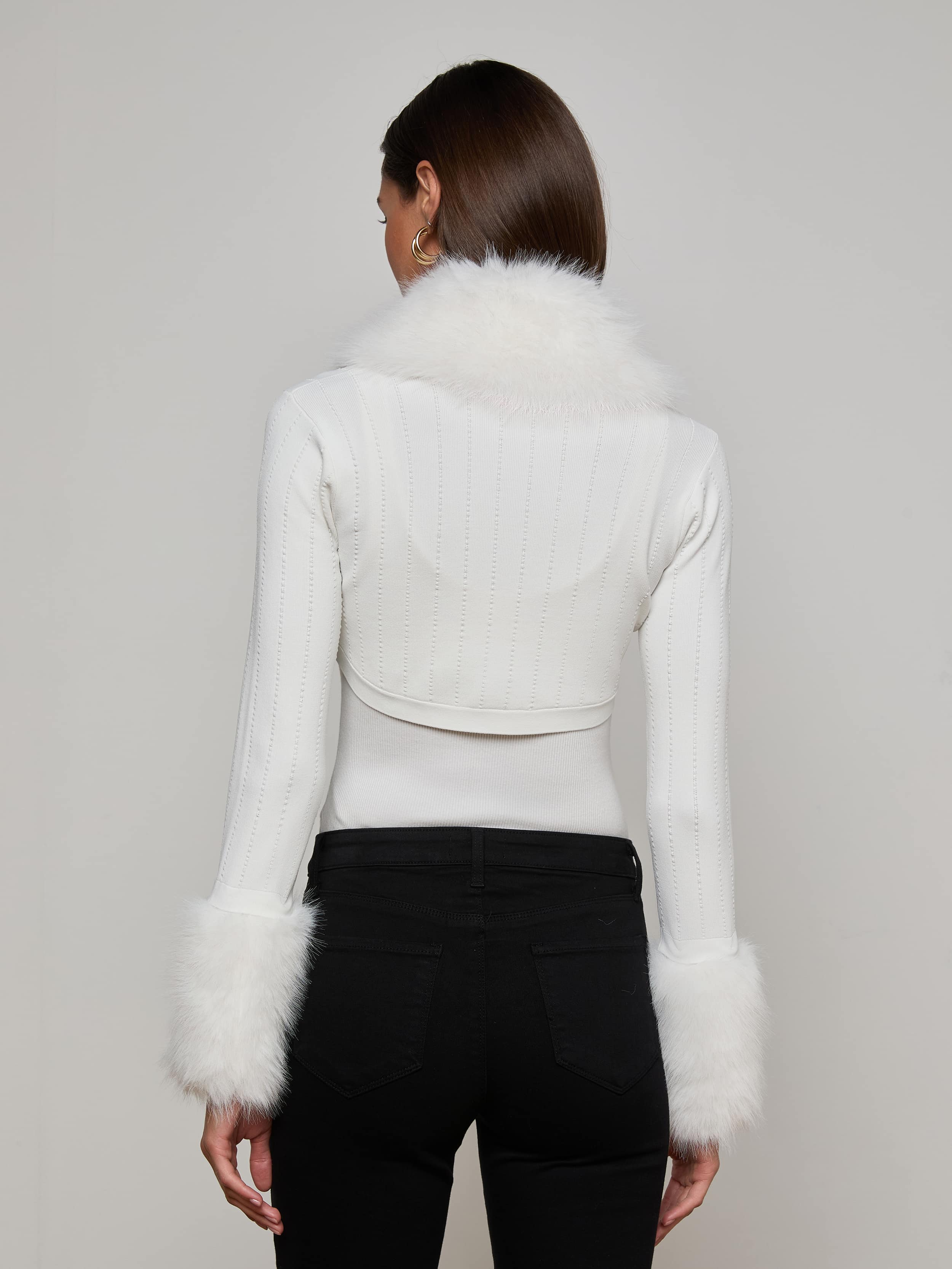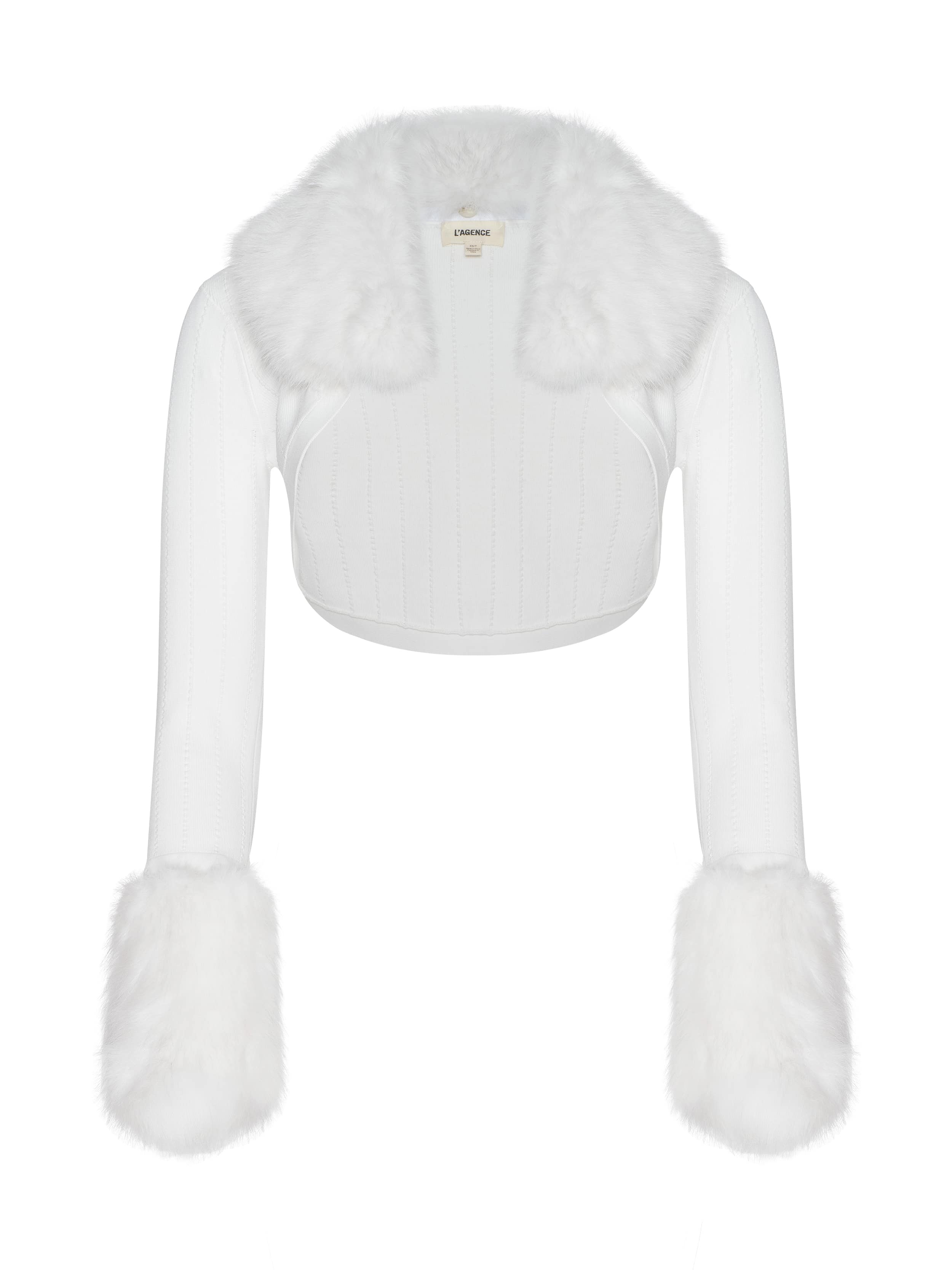 A fabulous little layer to add old Hollywood glamour to any look. Fully removable faux fur accents keep the Haru easy and versatile. Now back in ivory.