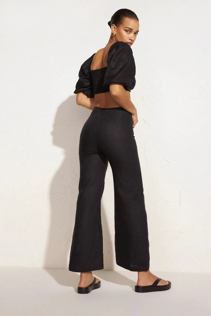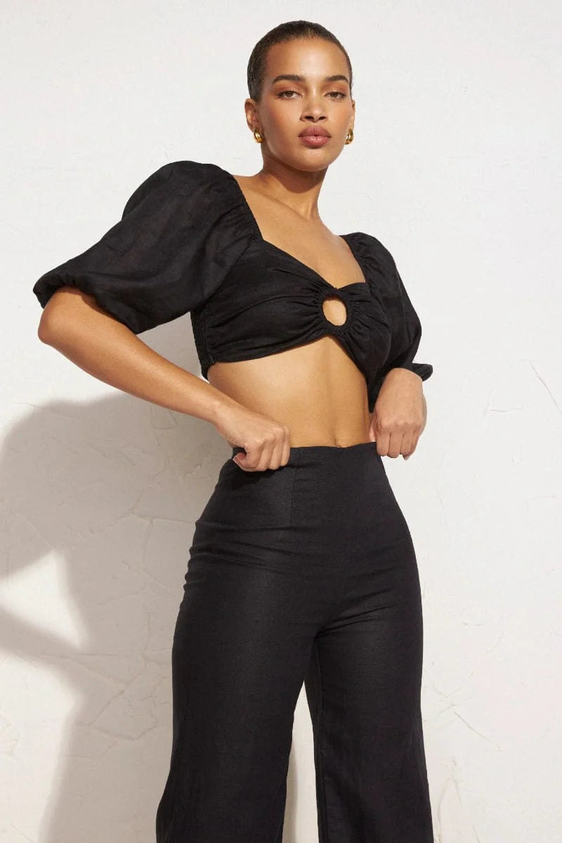 A wardrobe staple, the La Marches Top in Plain Black is a cropped style that pairs perfectly with our Ottavio Pants in Plain Black. This fully lined crop top features a 70’s ring detail in the bust, effortlessly feminine elasticated sleeves, shirring at the back and a side zipper. Cut from Linen - EUROPEAN FLAX® & OEKO-TEX100® Certified with fibres sourced, grown and cultivated in Normandy, France, this style is light and airy to wear whilst being gentle on the environment.