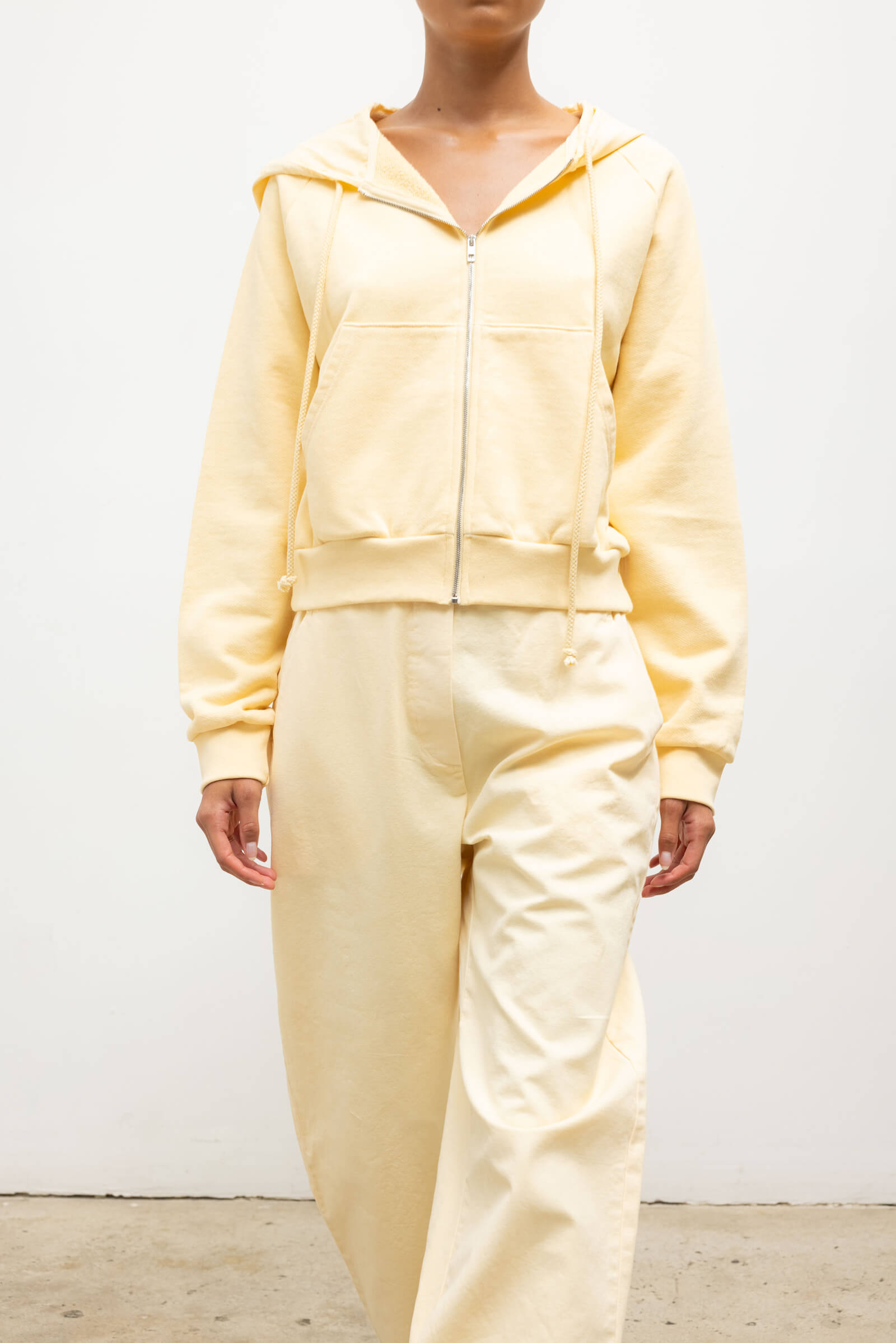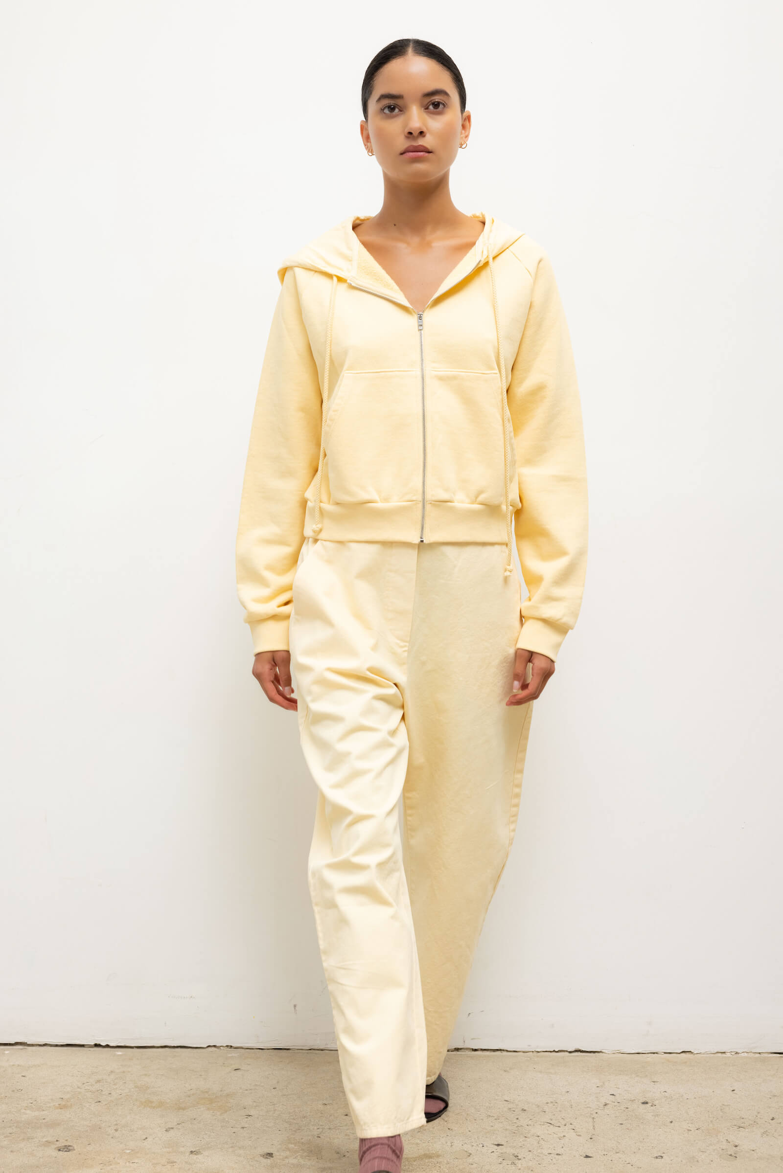 Cut in our new garment dyed Jamie Cotton Terry, The Jamie Patch Hoodie is a classic zip-up, featuring tonal patches with tonal topstitching and an adjustable drawstring. Make it a matching set with The Jamie Carpenter Pant.