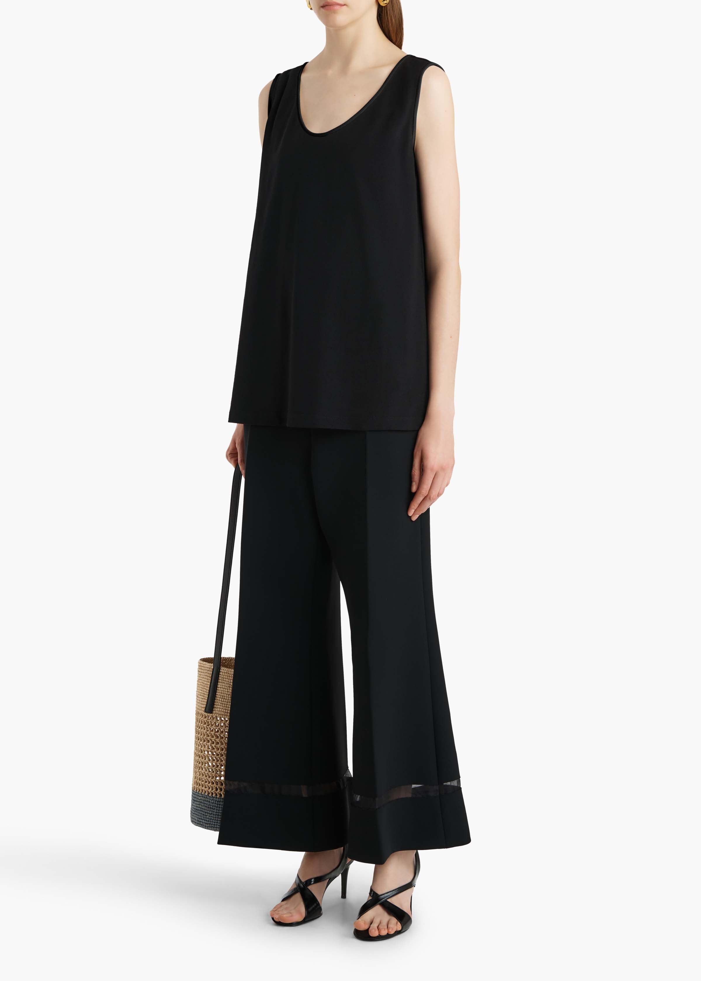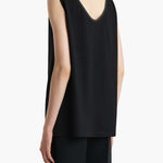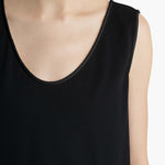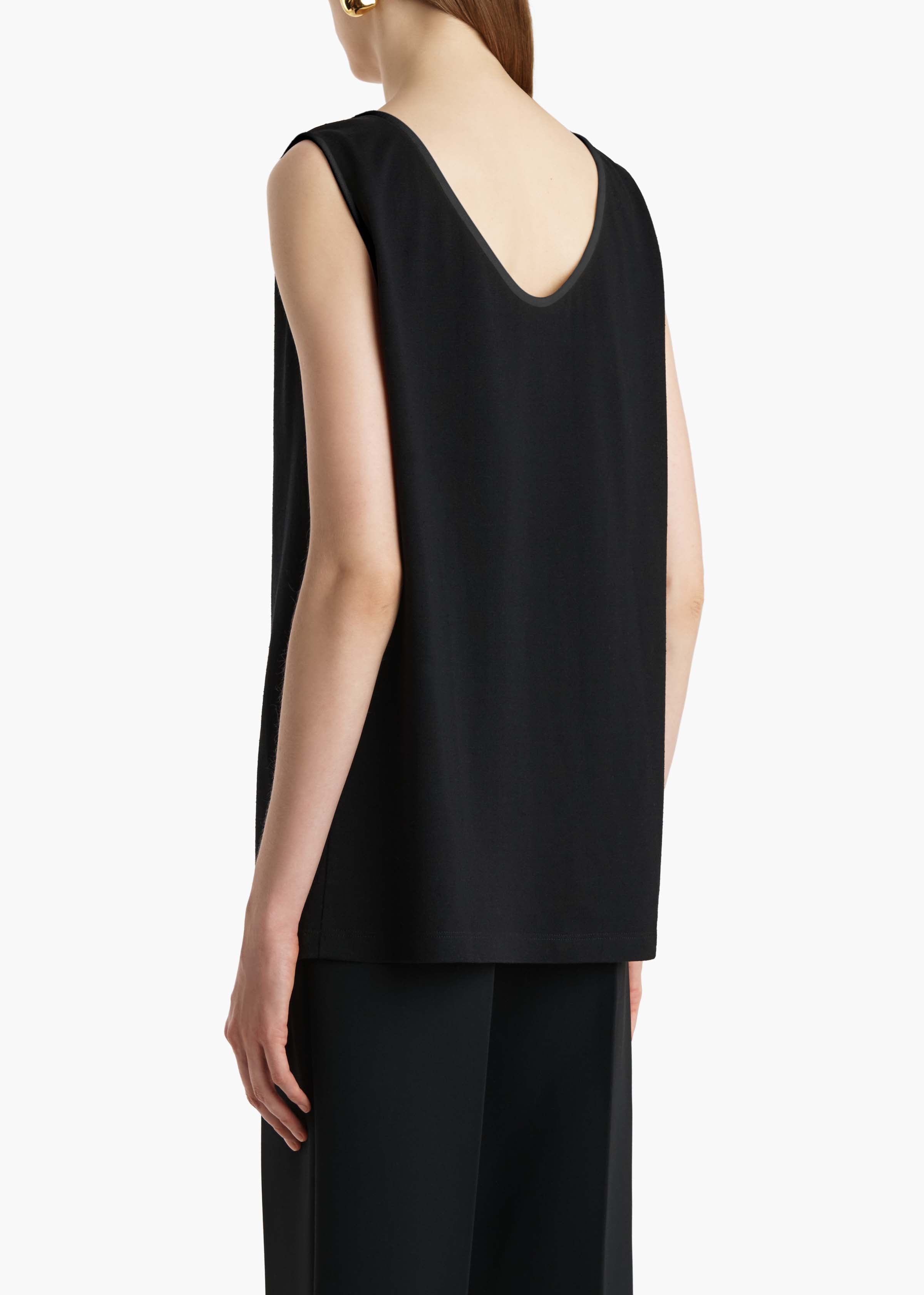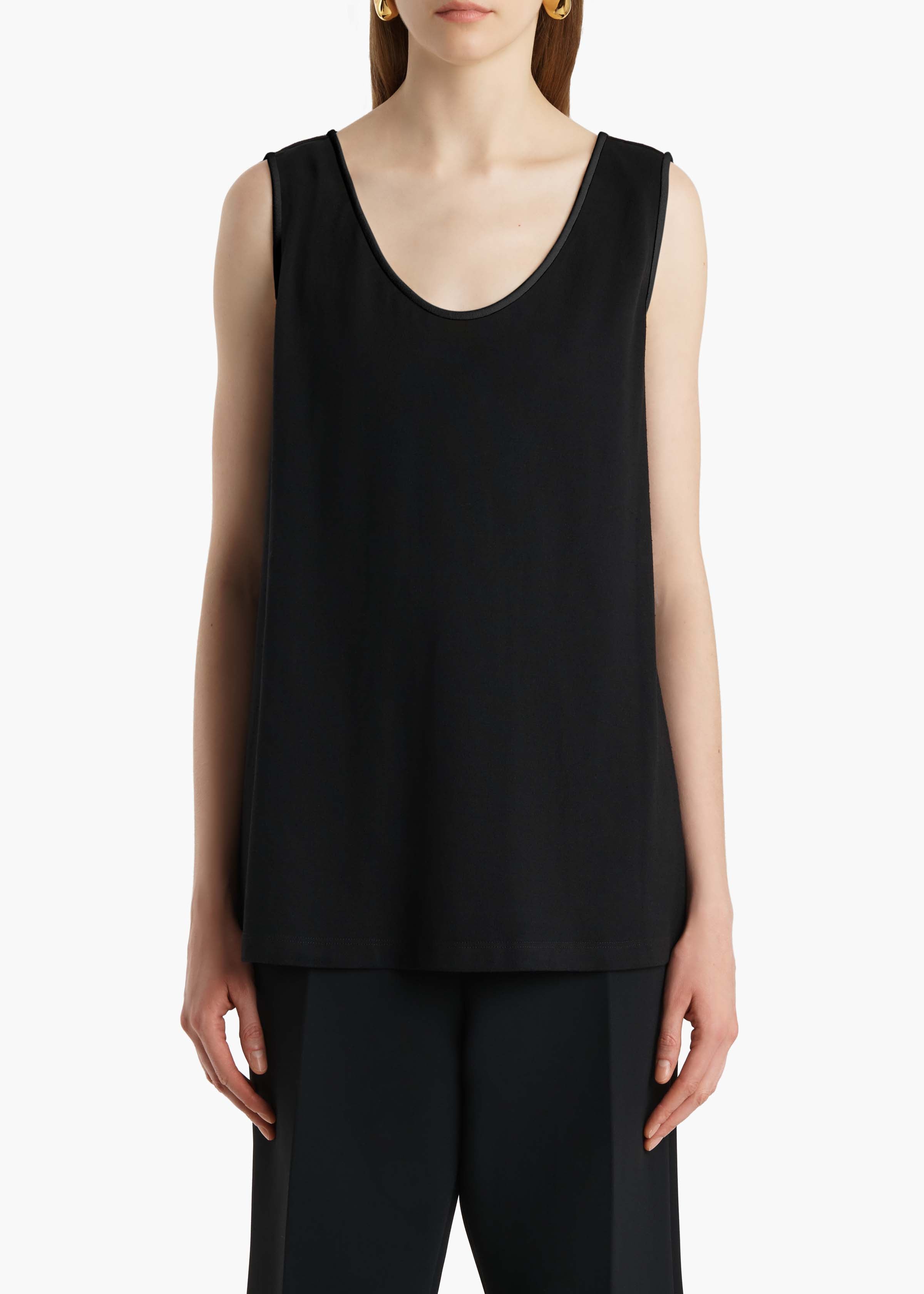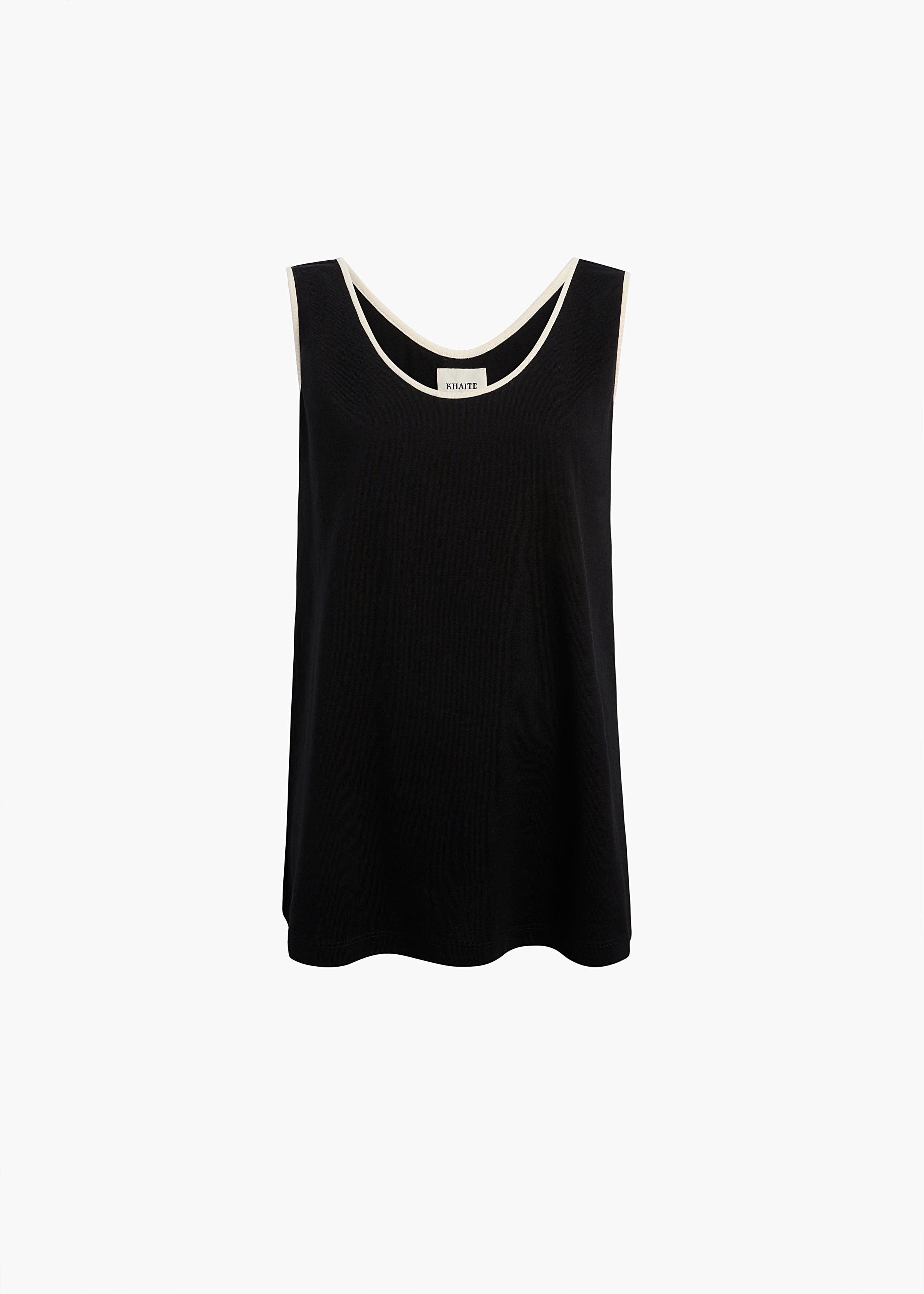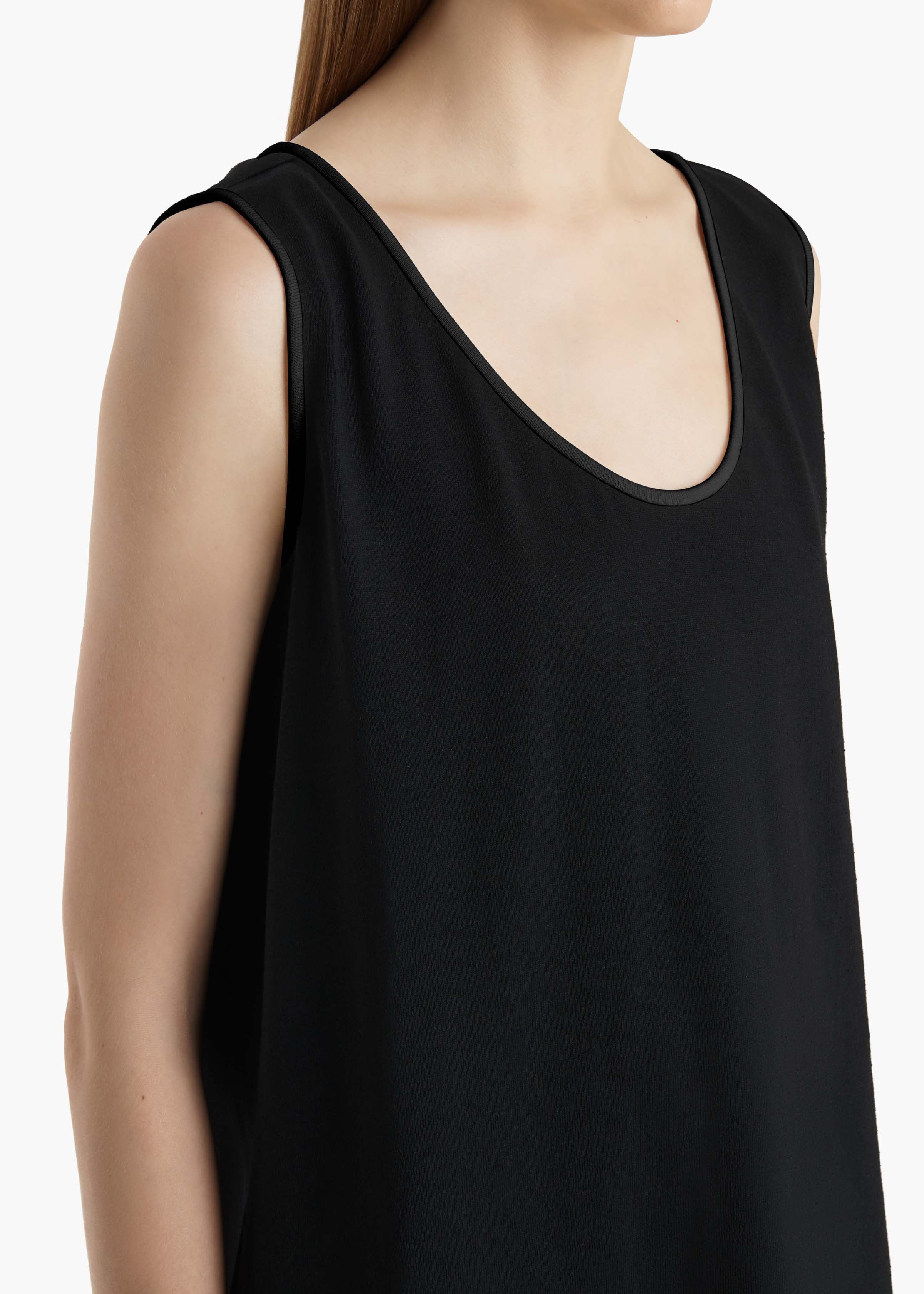 An easy-fitting sleeveless top in jersey that gains its raw, natural quality from organic Japanese silk. The scooped neckline, which is mirrored at back, is illuminated by contrast piping. Slips on for a smooth fit.