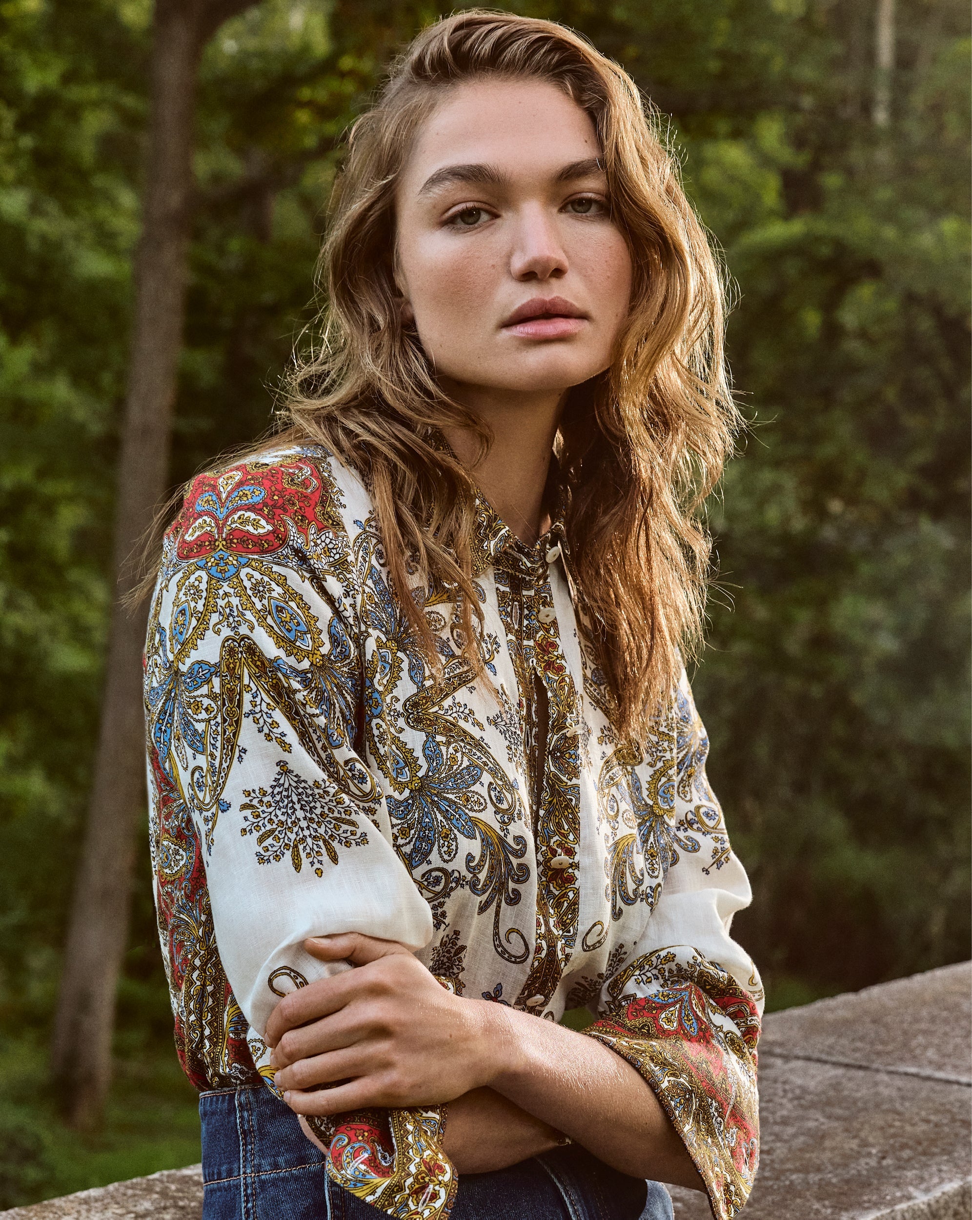 Made from lightweight linen, the Maryam elevates the classic white shirt with a beautiful ornamental floral. Cut for a relaxed fit, it features thoughtful construction and details—from the pleated yoke back for ease of movement to the matching fabric-covered buttons. Pair with the coordinating Hobbes shorts for a chic warm-weather set.