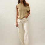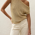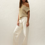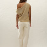 An off-shoulder top, designed from a unique heavy-weight jersey knit, blending cotton and nylon, in a warm neutral. Relaxed in its shape, it is intended to hang effortlessly on the body, with one sleeve dropping low on the arm and a ribbed band around the neckline. Style with the matching Micah Skirt for beach to bar dressing.