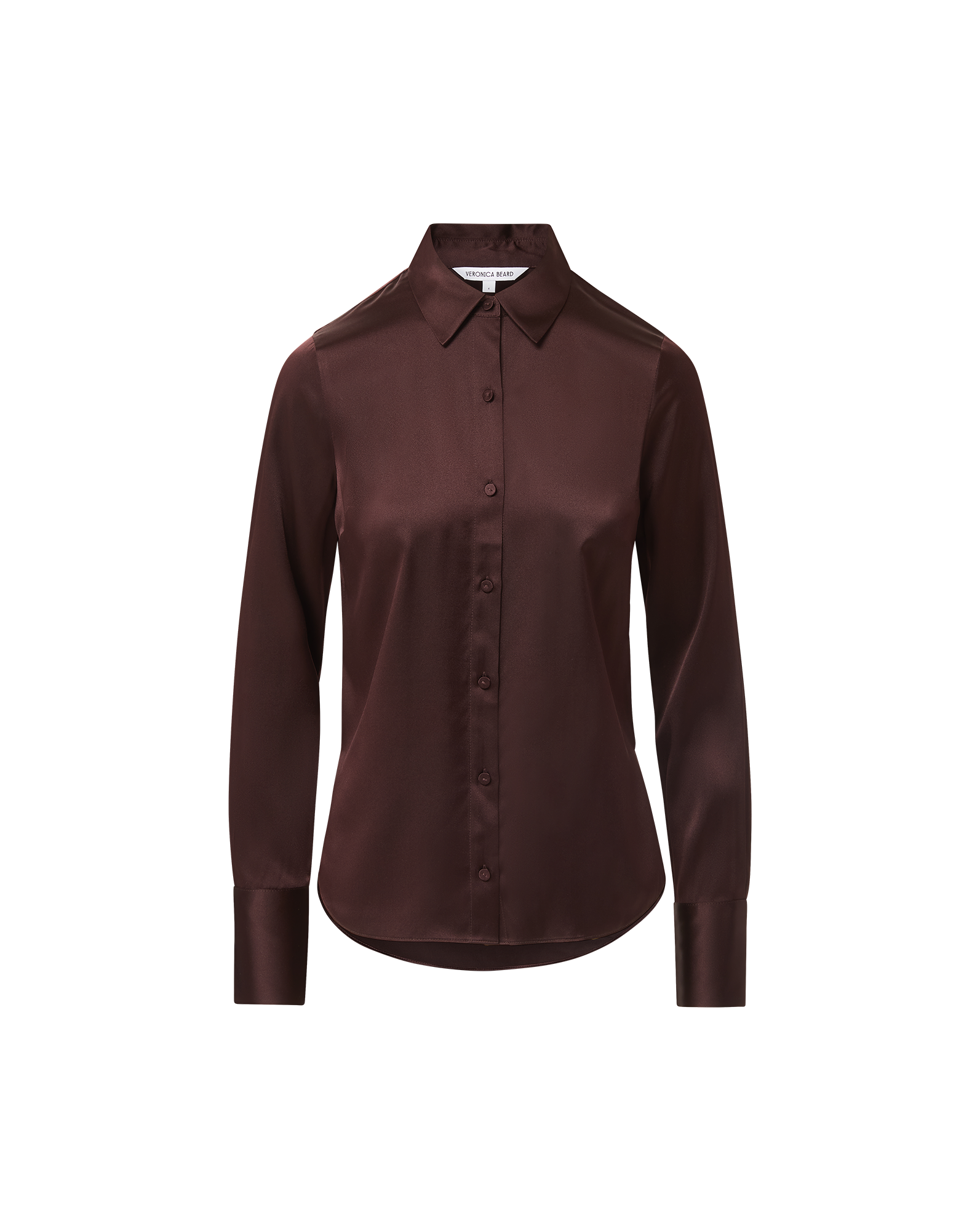 An elevated take on a closet staple. We obsessed over every detail of the Monique—from the relaxed fit and fluid drape to refined touches like the trim collar and elongated cuffs. Crafted from our premium silk blend in deep maroon, it offers both stretch and ease, giving this timeless button-down a distinctly feminine feel. Finished with silk-covered buttons, it’s the piece you’ll reach for season after season. Pair with your favorite denim for everyday ease or tailored trousers for a more polished look.