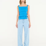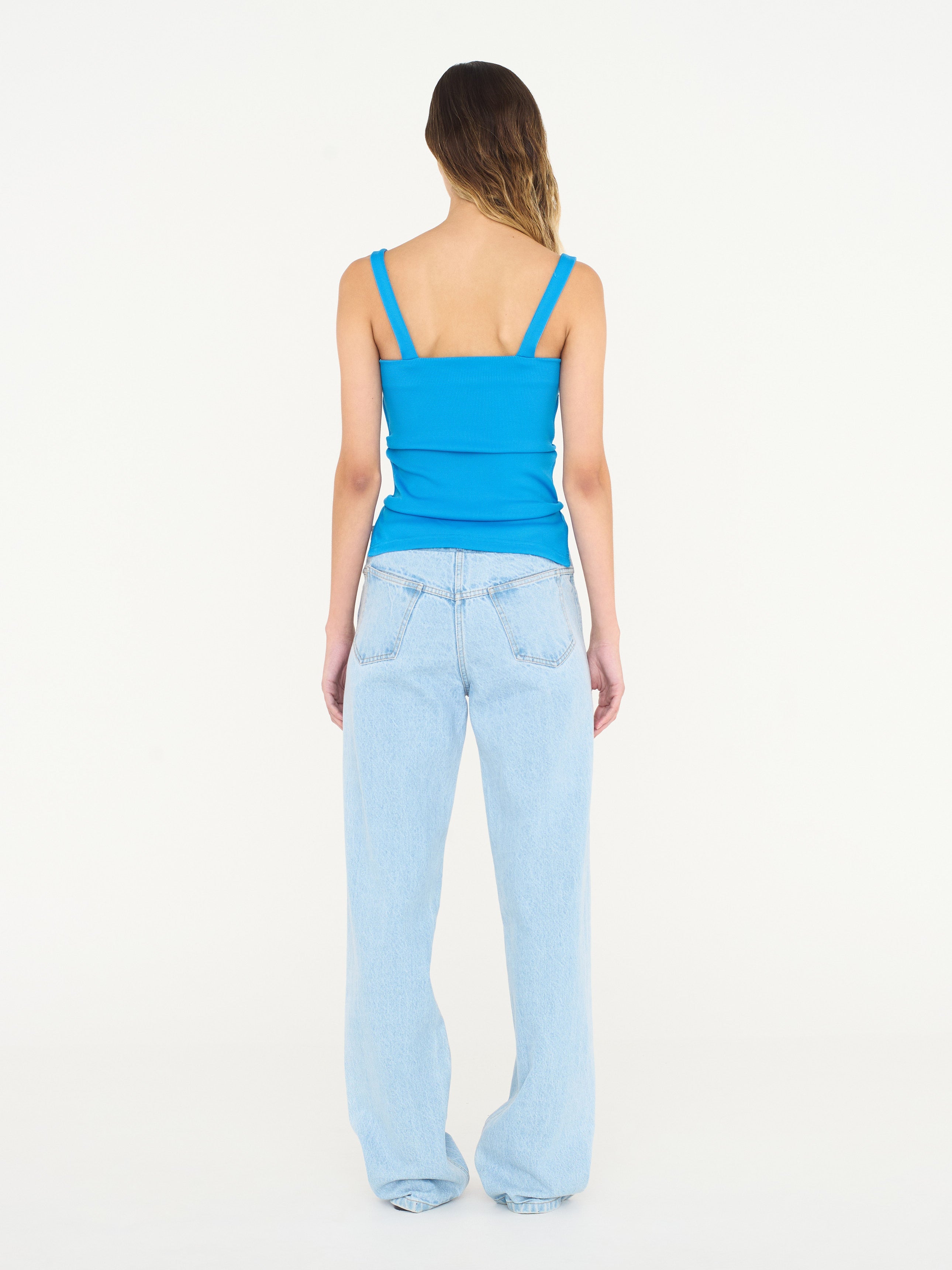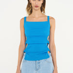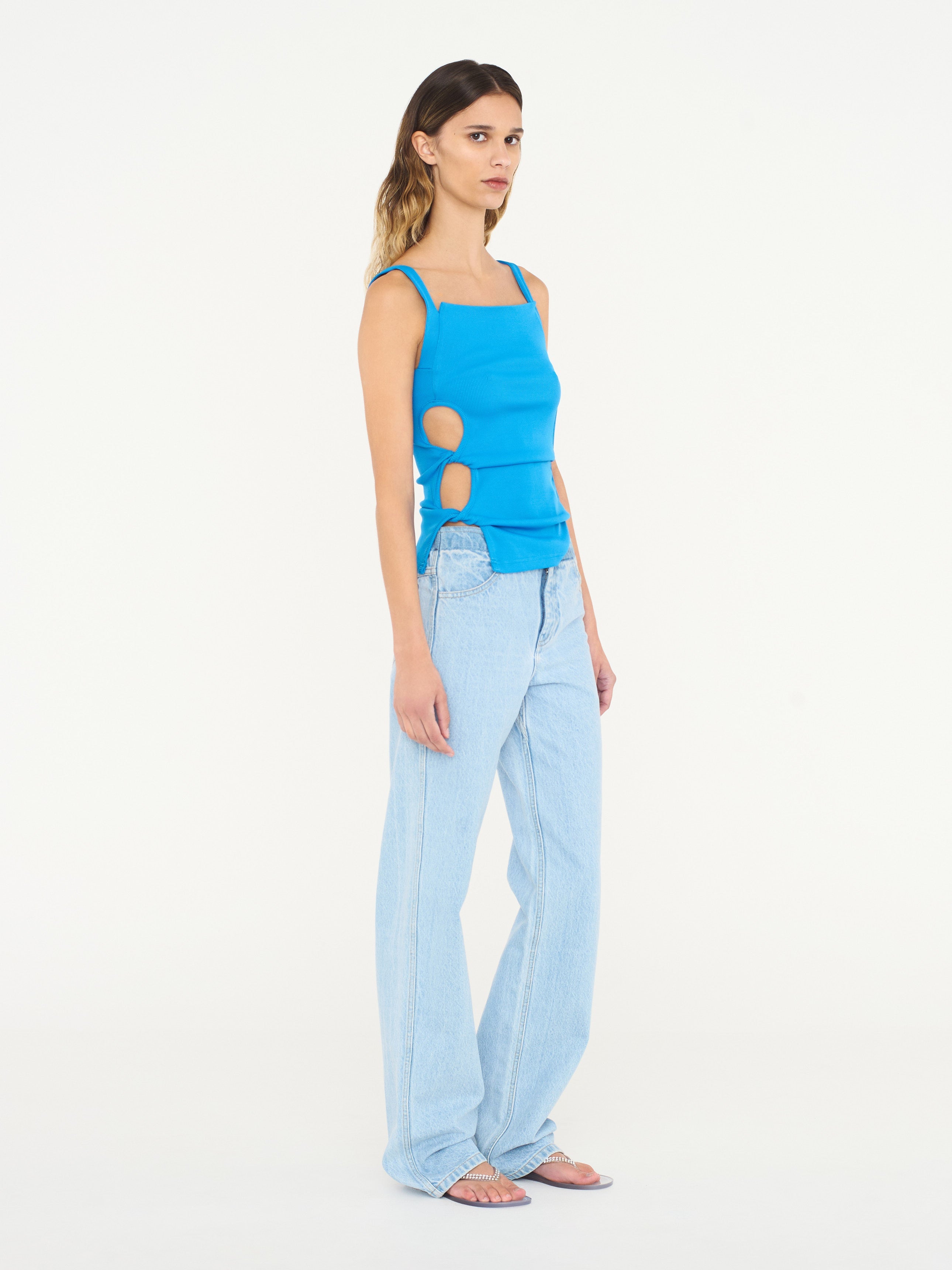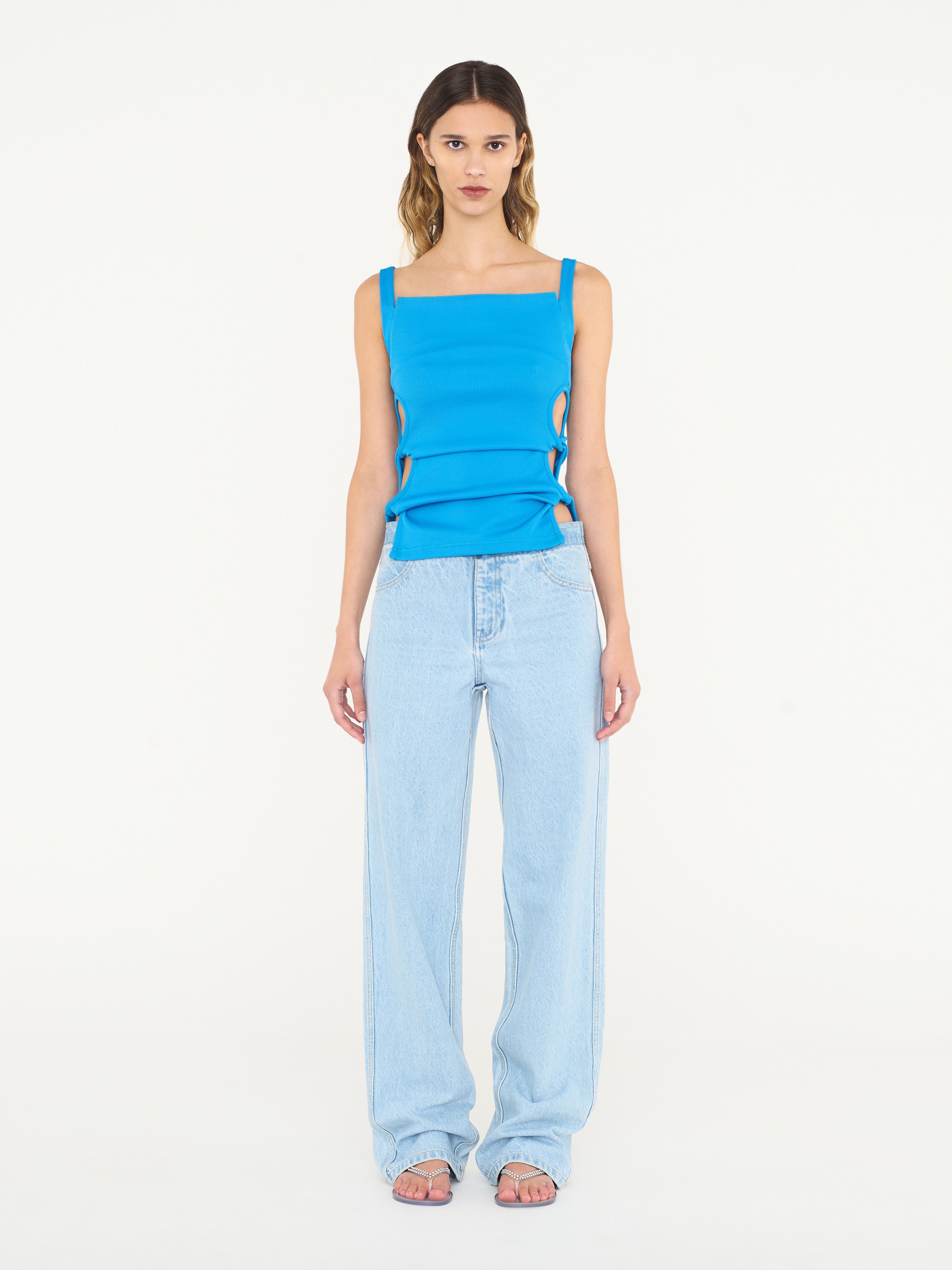 Codes of everyday wear spark curiosity with this apron inspired cut-out tank top. Fine rib stretches with ease over the body, considered cut outs twist and shape the waist.