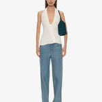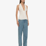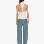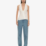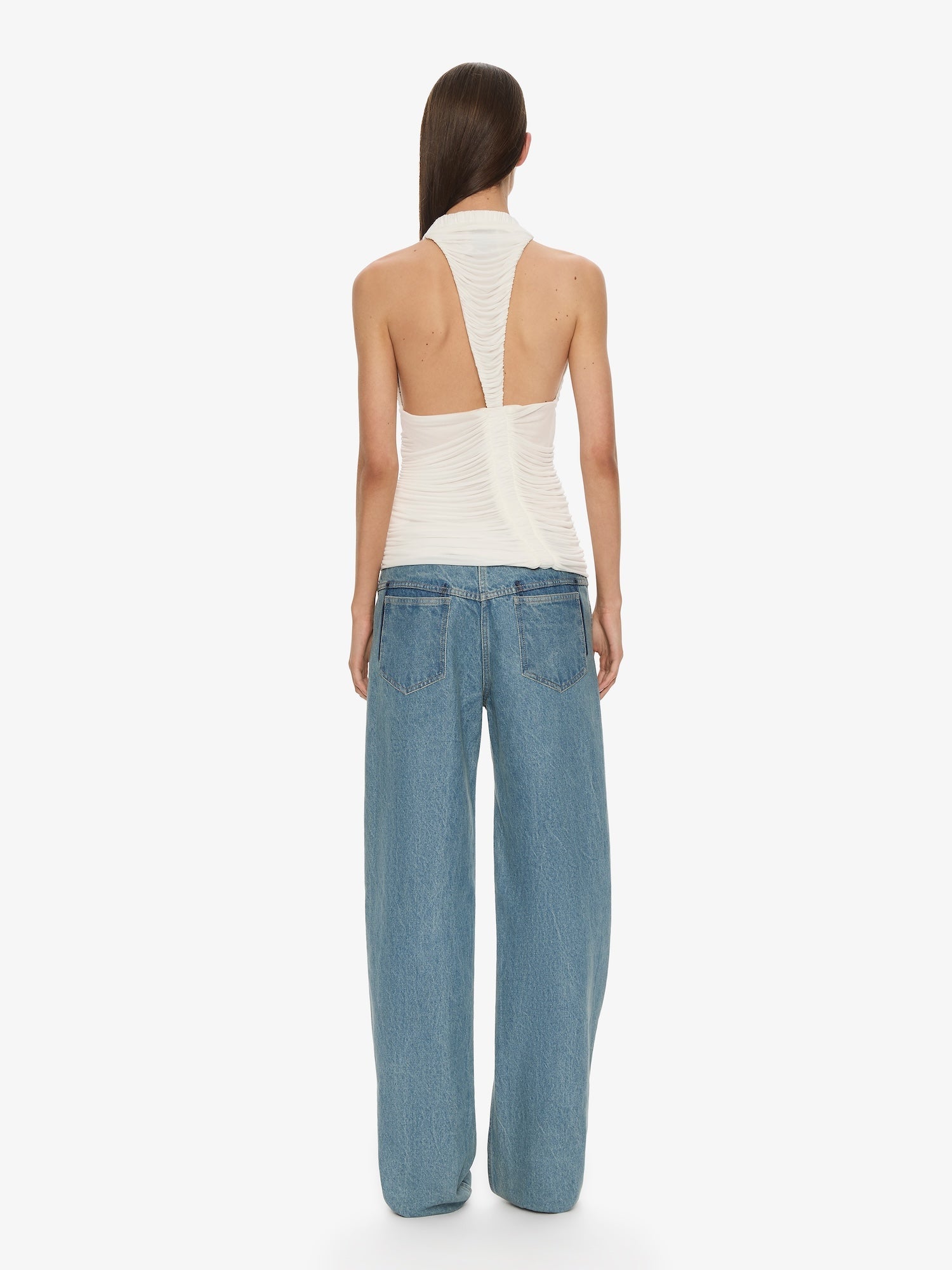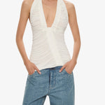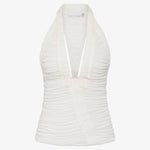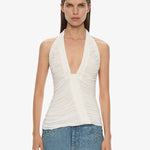 An evolution of the Orion Dress, the halter top is cut close through the body with ruched jersey construction. Defined by a deep plunge neckline, the silhouette balances volume and contour with precision.