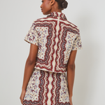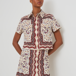 • Short sleeve button down printed cotton canvas shirt with front and back yokes with top stitching details