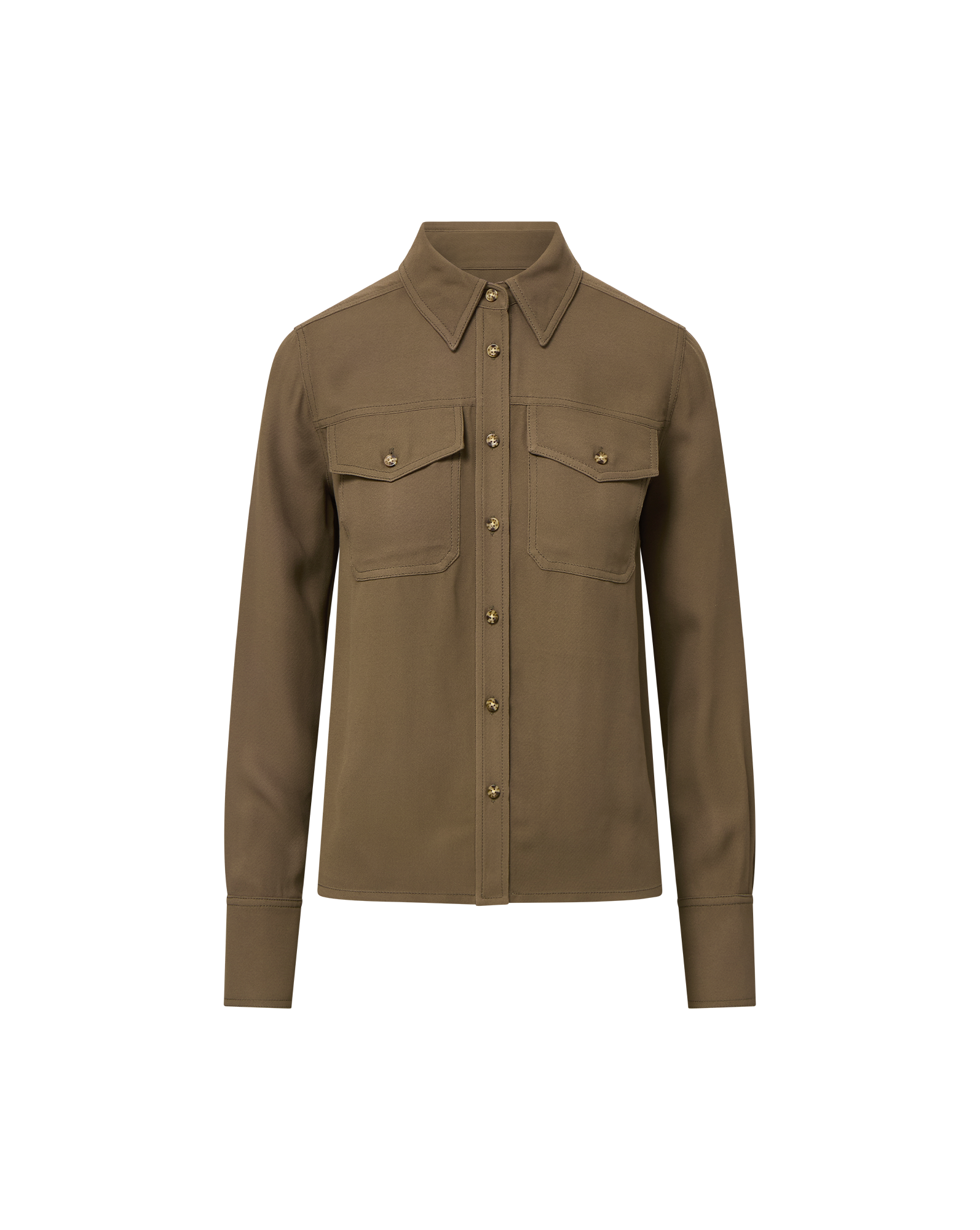 A true capsule wardrobe hero. The Pepper blouse is soft to the touch and drapes beautifully, giving the classic button-down a refined, elevated edge. Designed with a slim-fitting silhouette, it’s finished with double front flap pockets and elongated cuffs. Understated and effortless, it’s endlessly versatile—tuck it into your favorite denim for everyday ease, or pair with tailored trousers for a more polished look.
