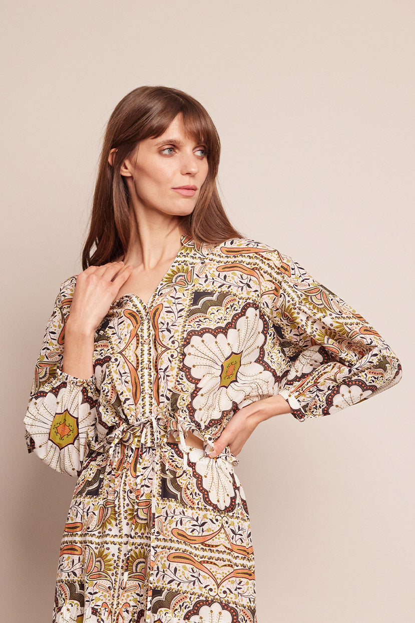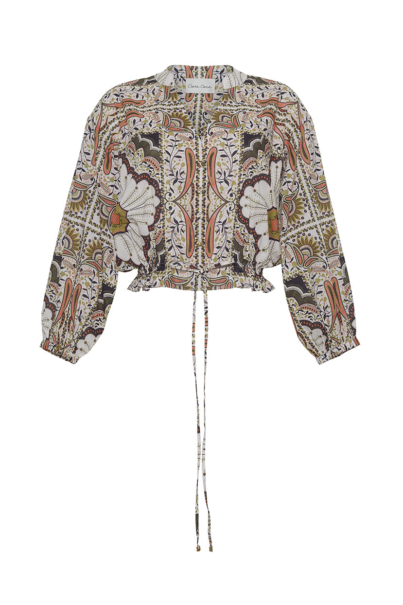Cut from airy cotton voile, the Perrin Top has an easy, oversized silhouette that gathers with drawstring ties at the cropped hem. Wear it as a set with the matching Melanie Skirt.