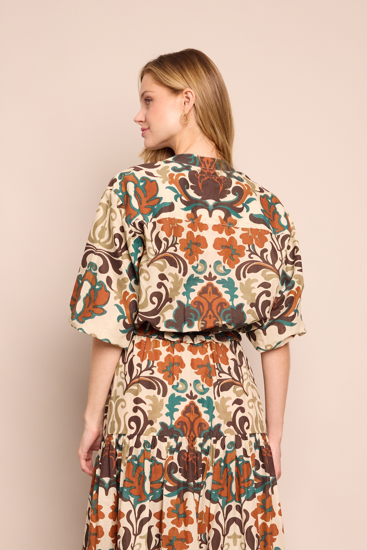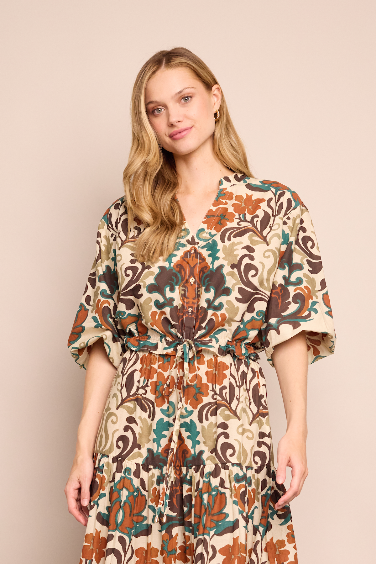 Cut from airy cotton voile, the Perrin Top has an easy, oversized silhouette that gathers with drawstring ties at the cropped hem. Wear it as a set with the matching Melanie Skirt.
