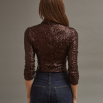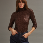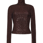 Our Piper Top is a luxe turtleneck in a bold brown sequin. Brilliant for cold weather layering to add sophistiation to any winter occasion. The Piper is perfect for tucking into trousers or teaming with a chic blazer.