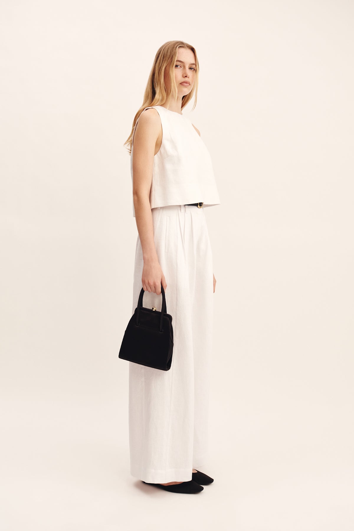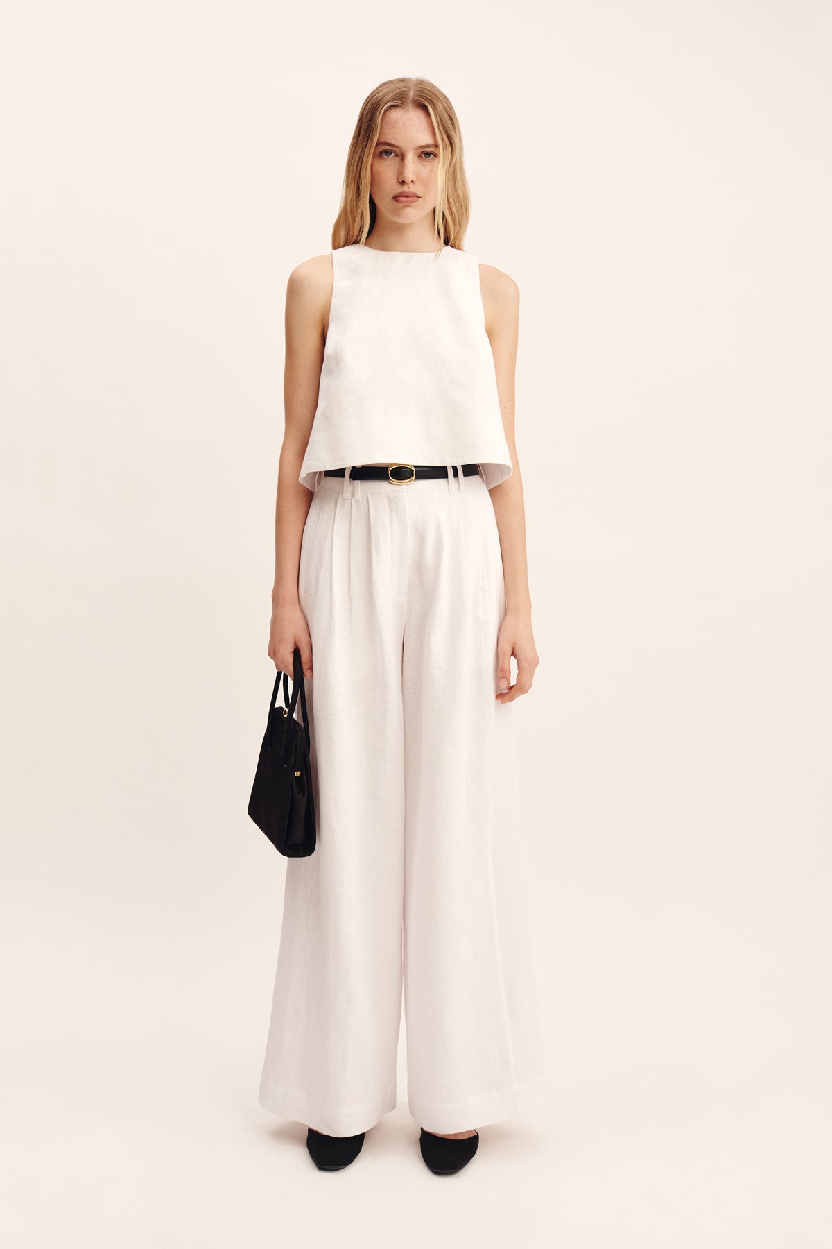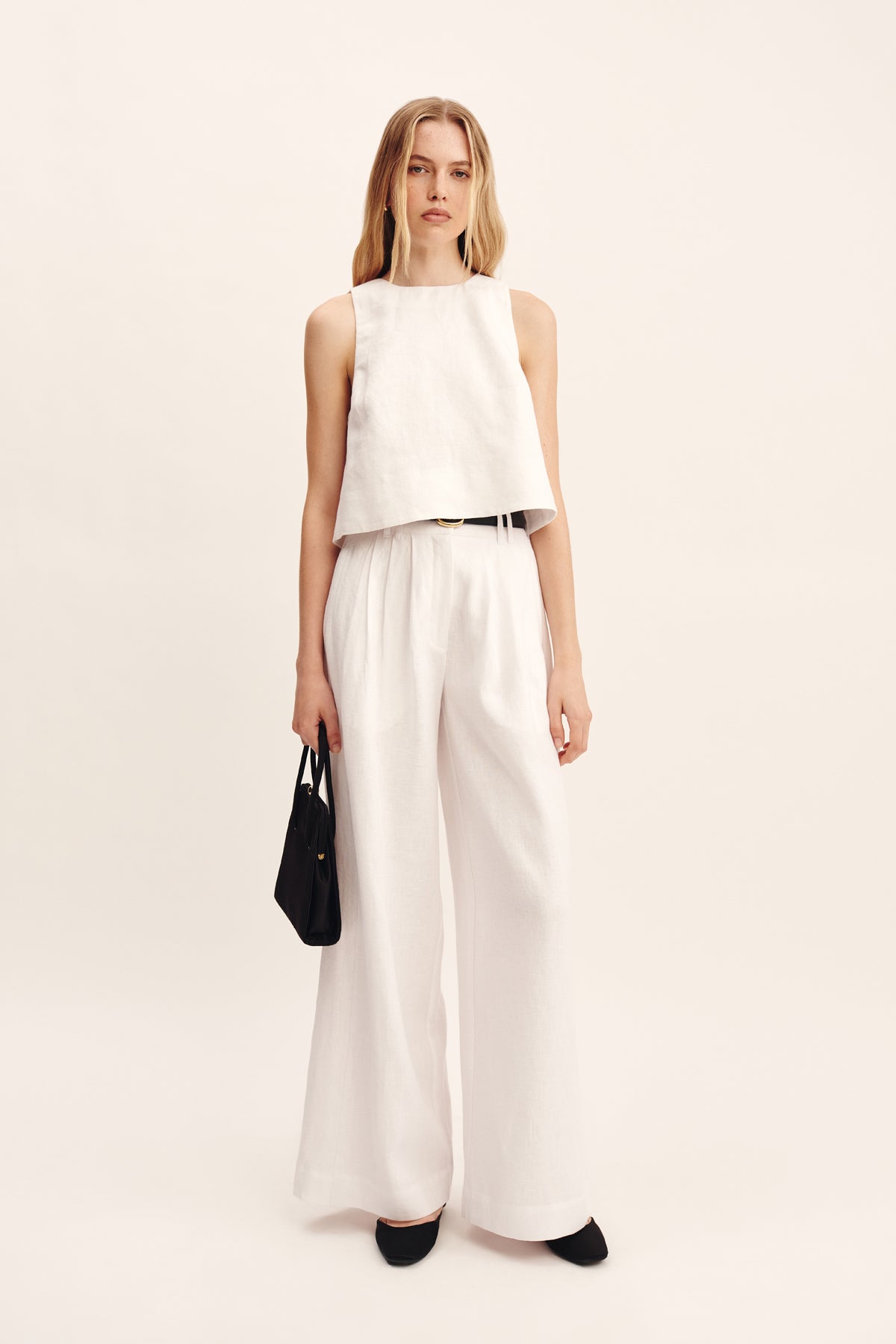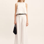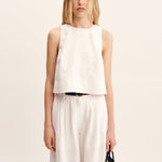 Cut from premium linen, the Poppy Top features a high neckline and relaxed A-line silhouette, finished with an exaggerated hem. Style yours as a set with the Louis Trouser or Emma Pencil Skirt.