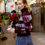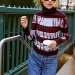 • Fitted long sleeve turtleneck with hand tie-dyed novelty knit