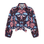 • Long sleeve easy button down collared shirt with self ties at front hem