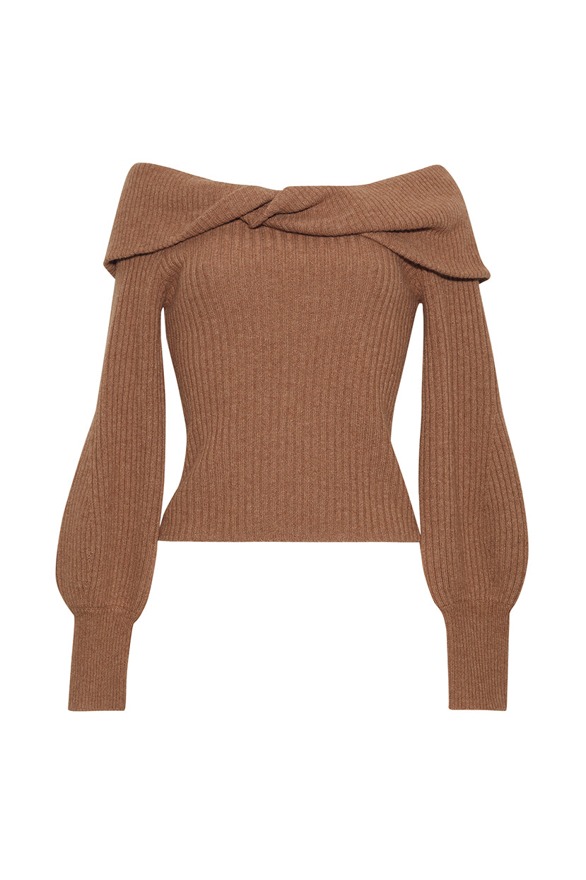 The Salma Top is an ultra-luxurious wardrobe essential, crafted in a lush cashmere blend rib knit. Lantern sleeves add volume to the fitted silhouette, while the draped, twisted neckline offers sophistication and elegance.