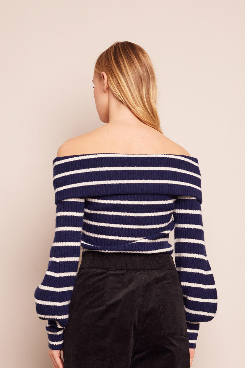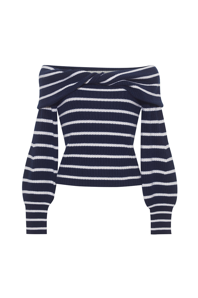 The Salma Top is an ultra-luxurious wardrobe essential, crafted in a lush cashmere blend rib knit. Lantern sleeves add volume to the fitted silhouette, while the draped, twisted neckline offers sophistication and elegance.
