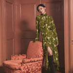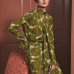 • Center back slit at back with self covered shank button with gold rim detail for closure