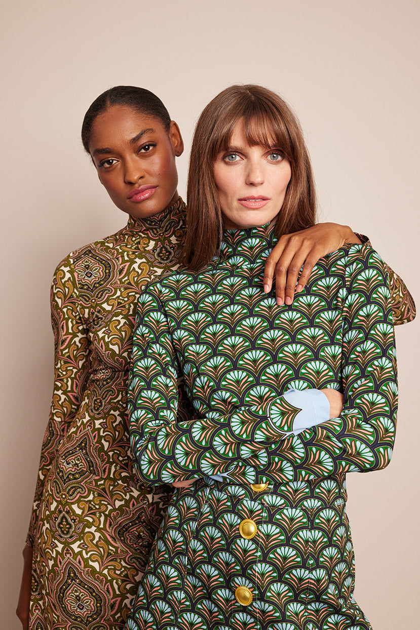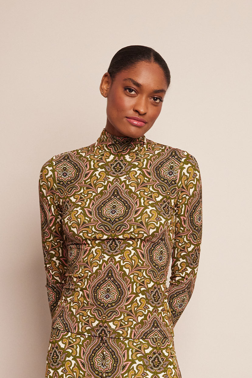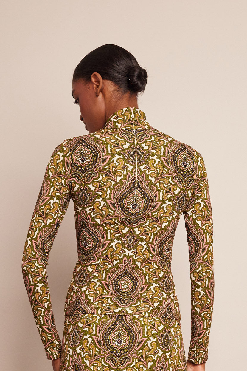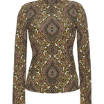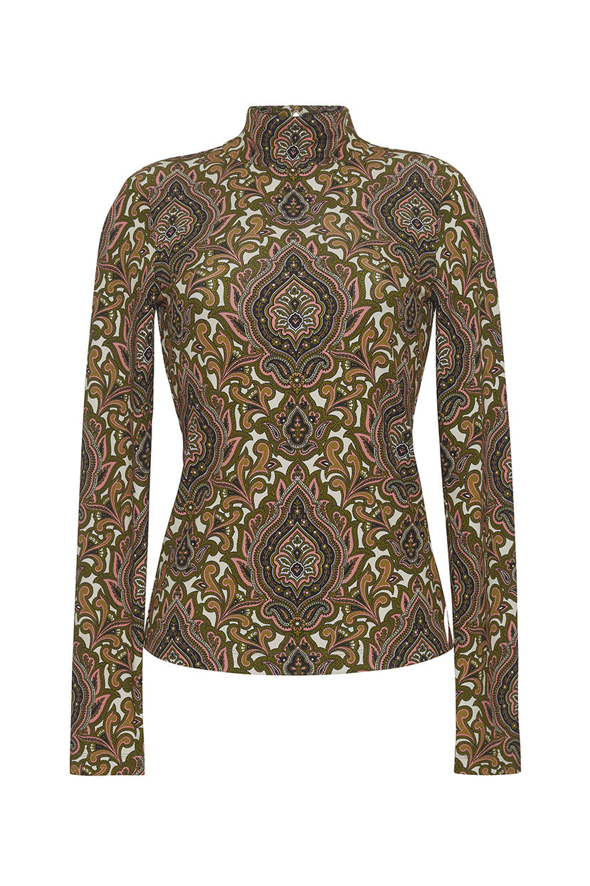 The Suzie Top is an ultra-luxe, elevated layering staple sure to become a key part of your wardrobe rotation. The fitted mock-turtleneck silhouette is rendered in boldly printed slinky jersey.