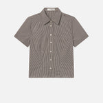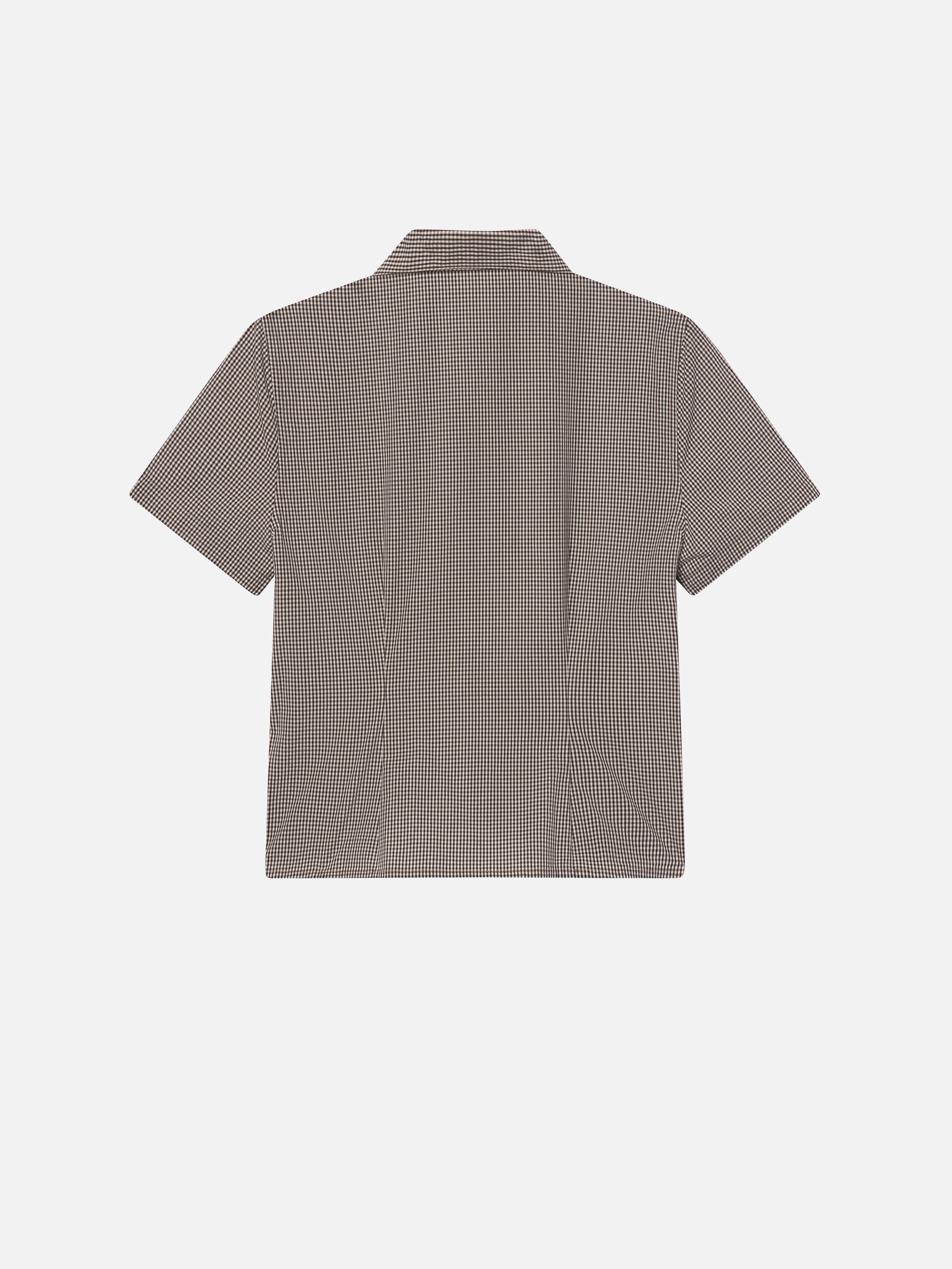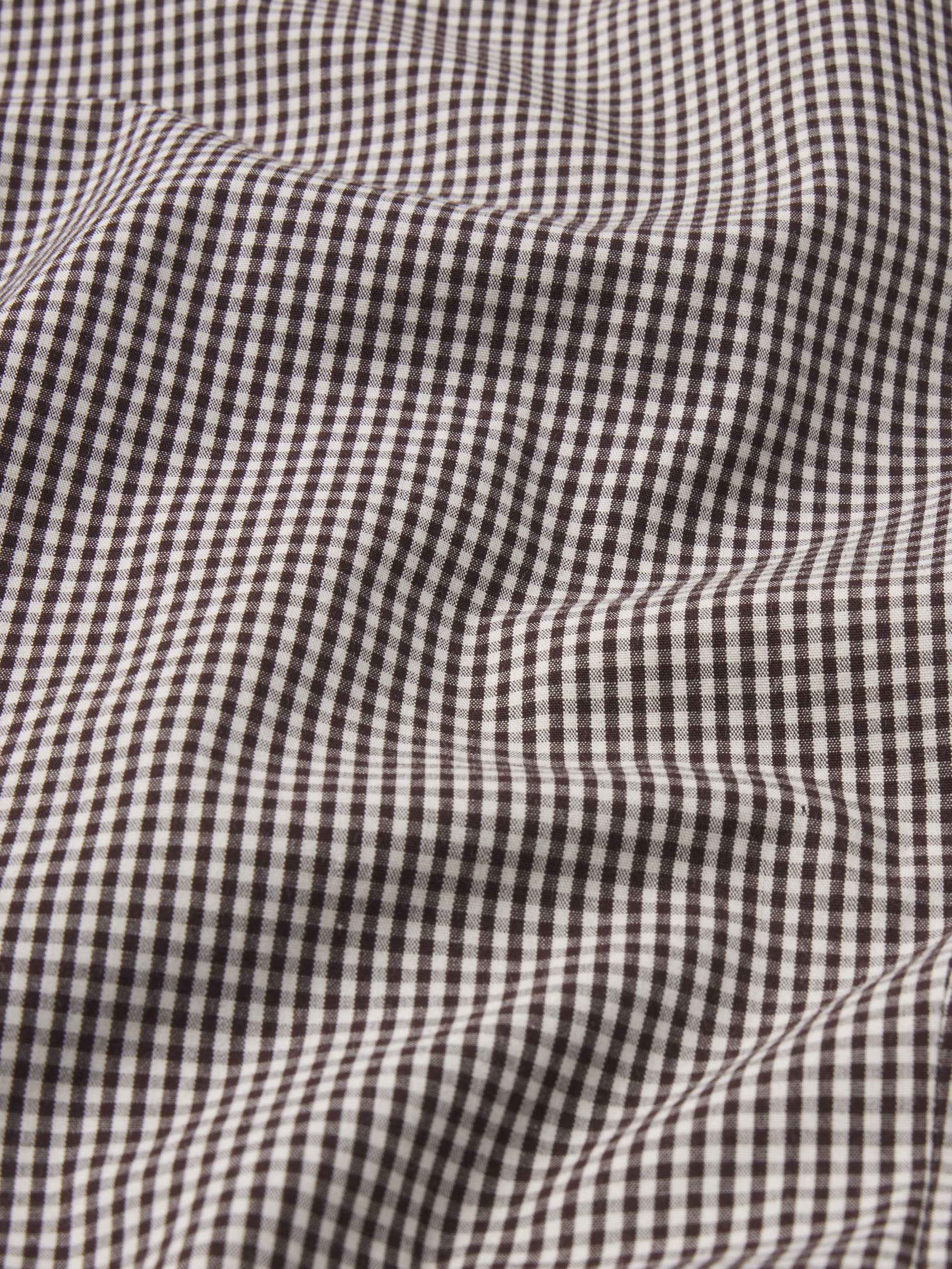 This poplin shirt bridges the seasons, with a Fall-ready brown colorway and a gingham print that nods to summer.  Transitional, polished and effortless, with dual front patch pockets and a pointed collar.