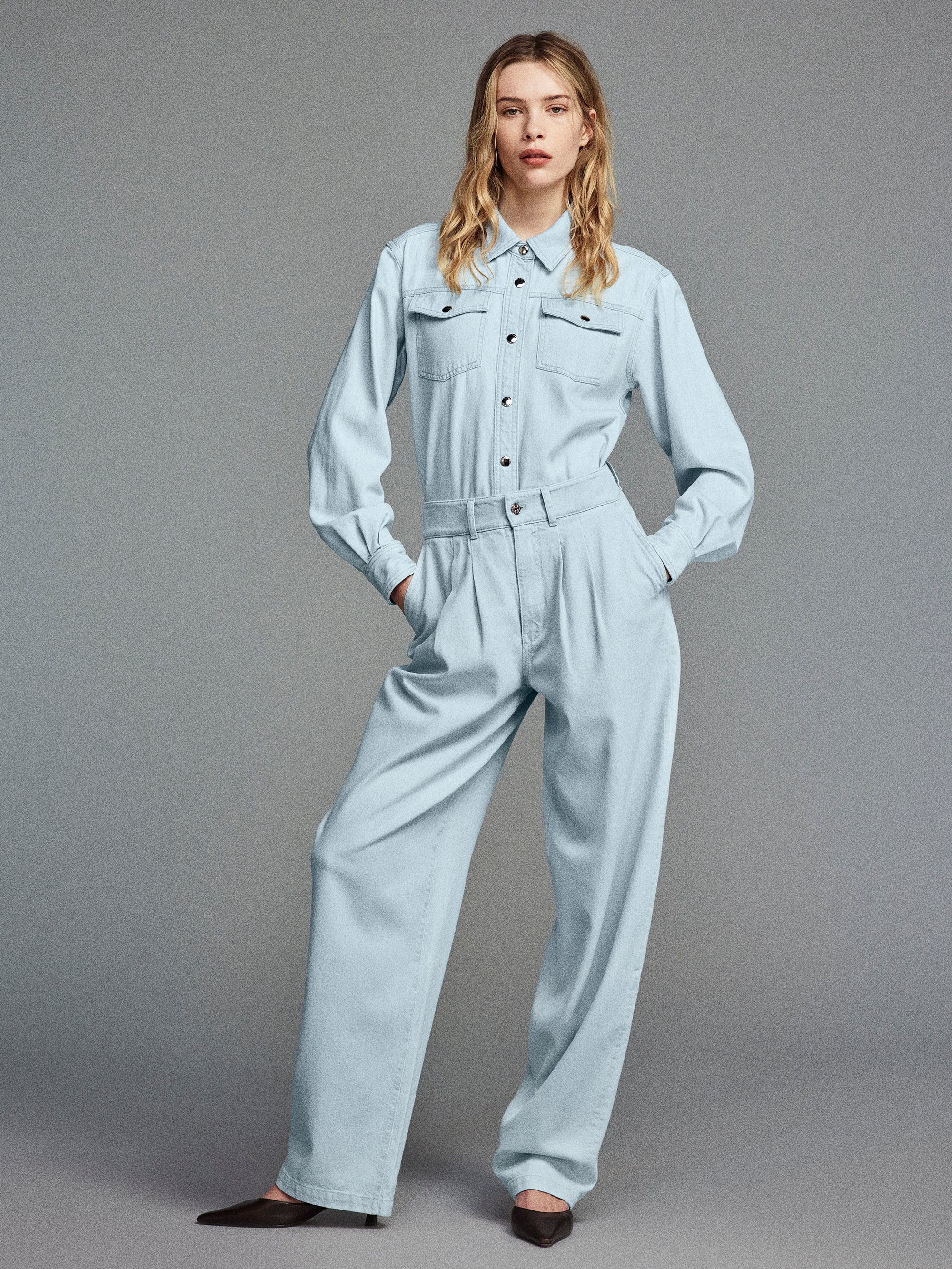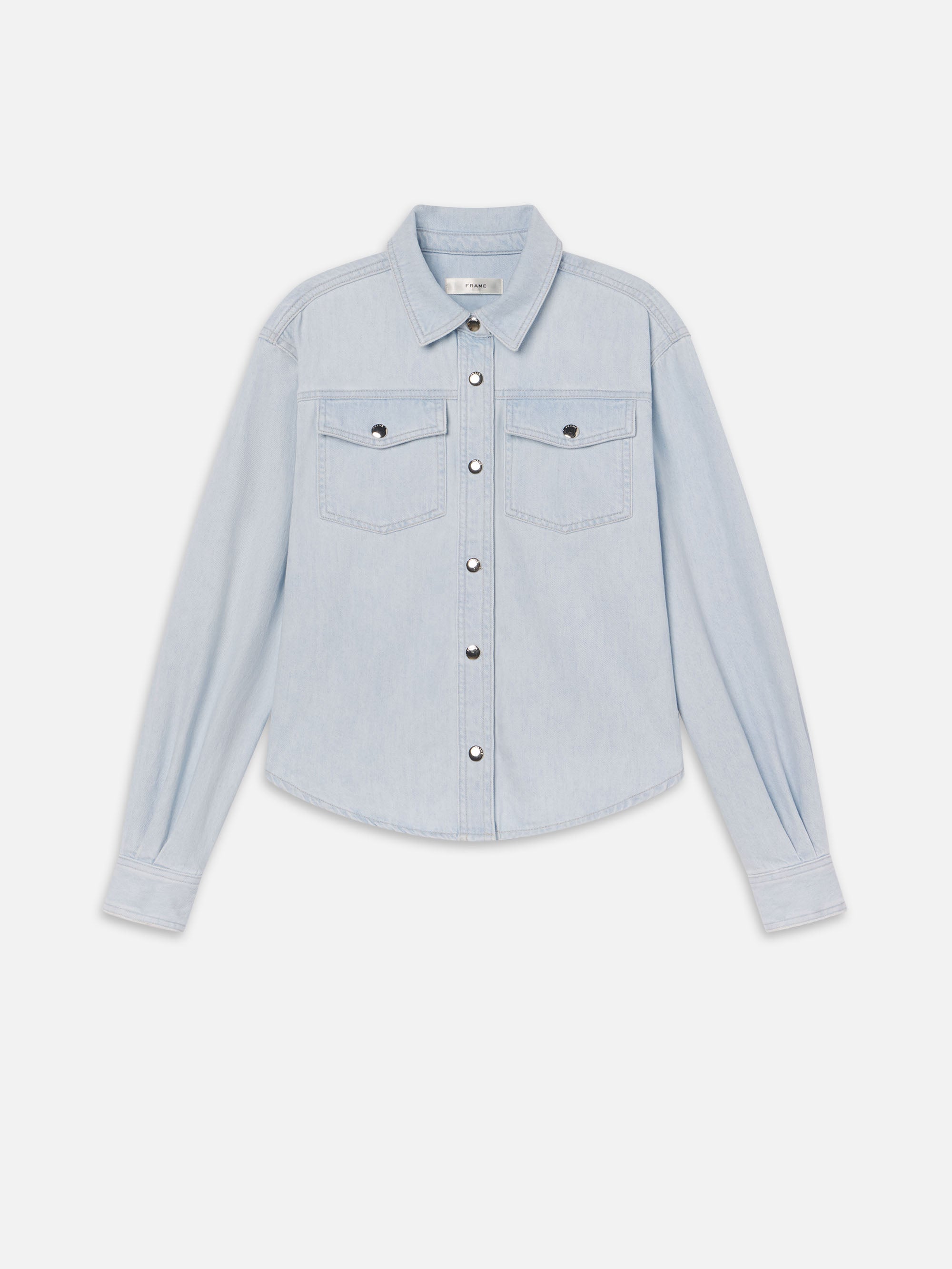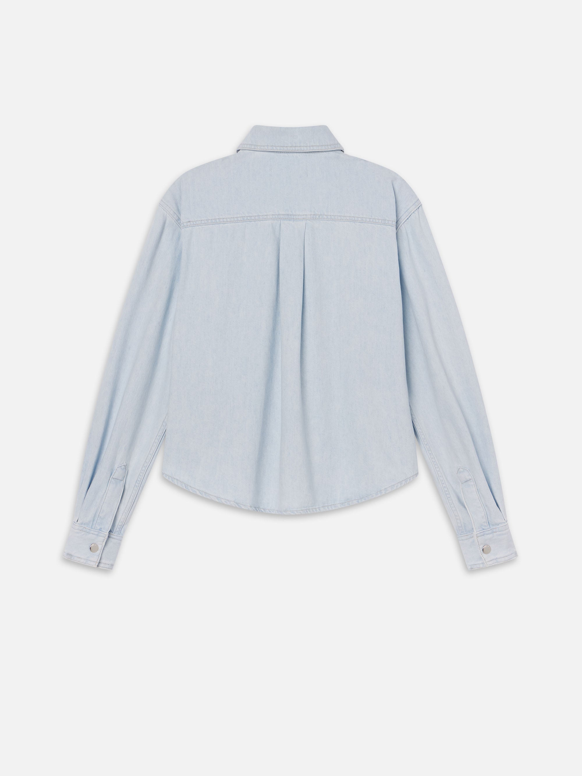 Cut from ultra-lightweight cotton and washed to the palest blue, The Mainstay nods to western styling with flap pockets and a curved hem—but lands squarely in modern territory. Pair yours with the Tapered Trouser for a tonal pairing that feels intentional and effortlessly put-together.