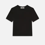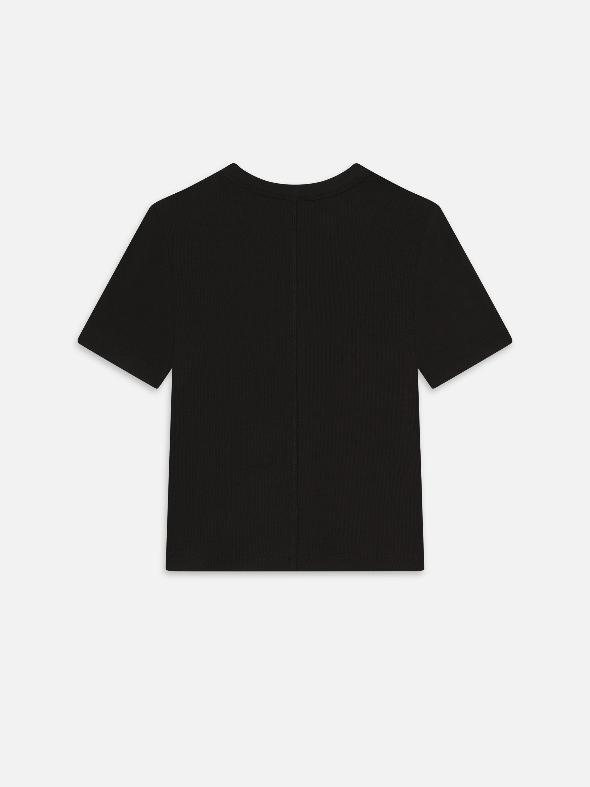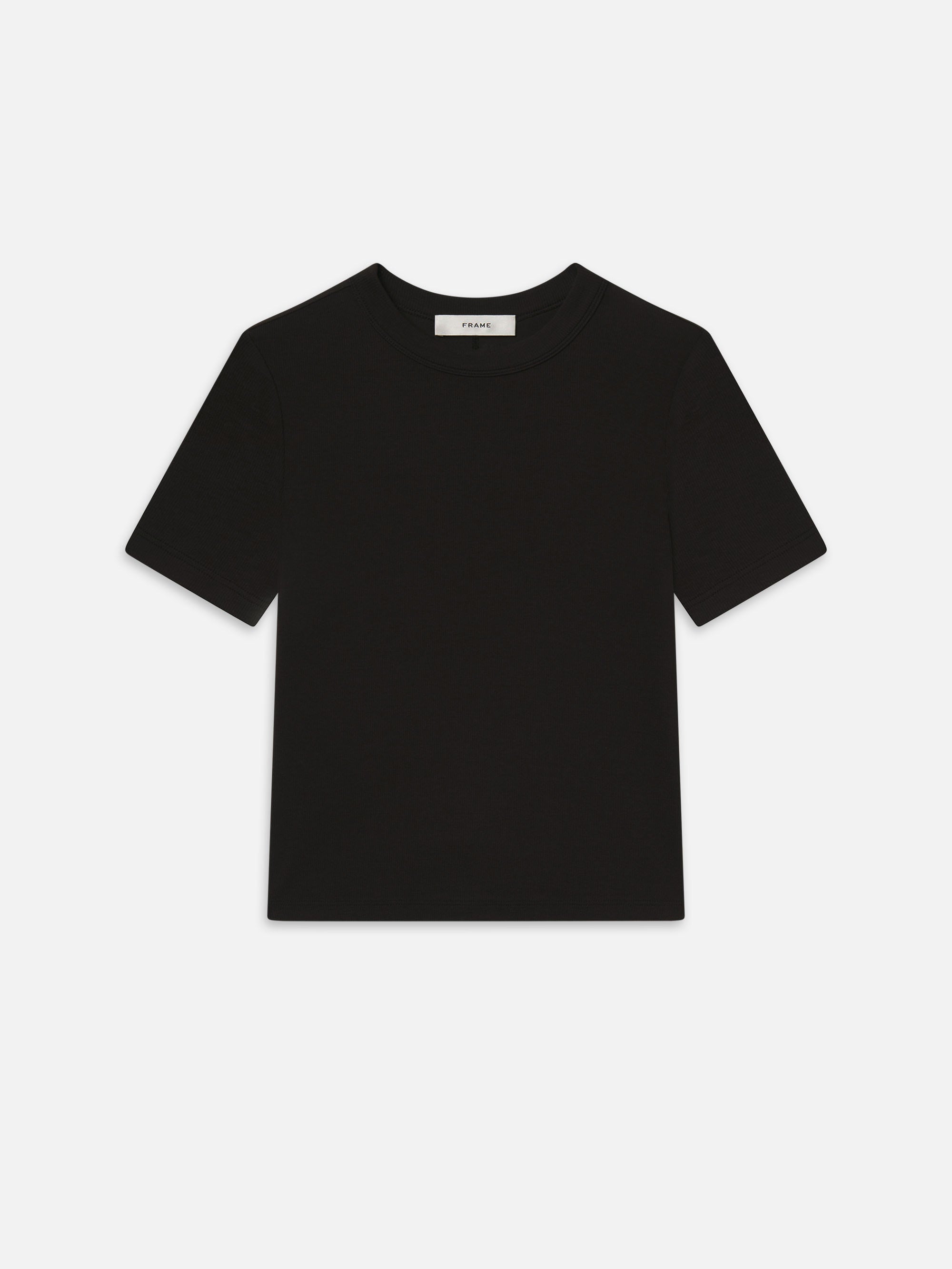 Soft and stretchy, this baby tee enhances your go-to everyday t-shirt with fine ribbed trim. Cut to a slightly shrunken fit, you can pair it with denim for a chic, fuss-free uniform.