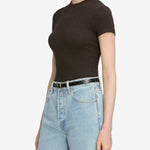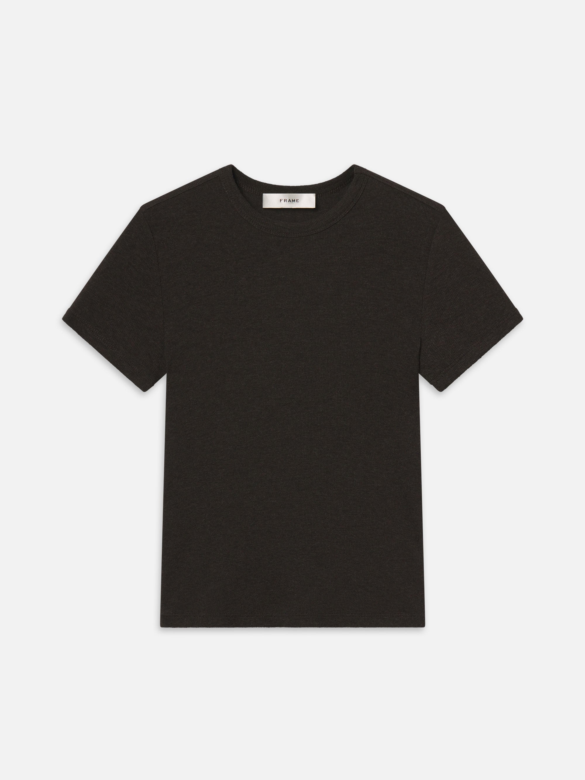 Soft and stretchy, this baby tee enhances your go-to everyday t-shirt with fine ribbed trim. Cut to a slightly shrunken fit, you can pair it with denim for a chic, fuss-free uniform.