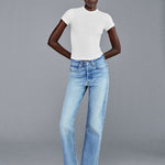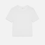 Soft and stretchy, this baby tee enhances your go-to everyday t-shirt with fine ribbed trim. Cut to a slightly shrunken fit, you can pair it with denim for a chic, fuss-free uniform.