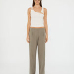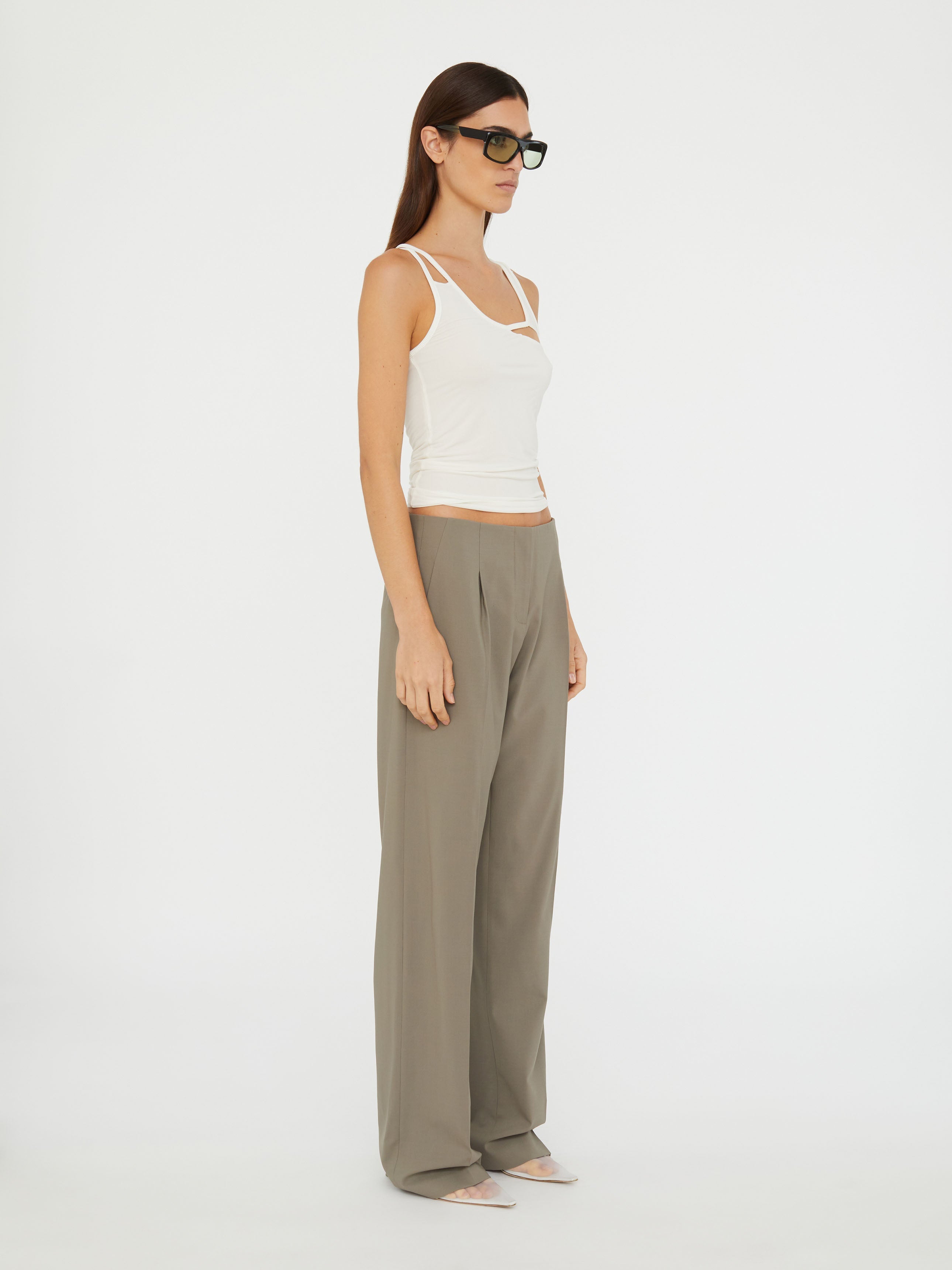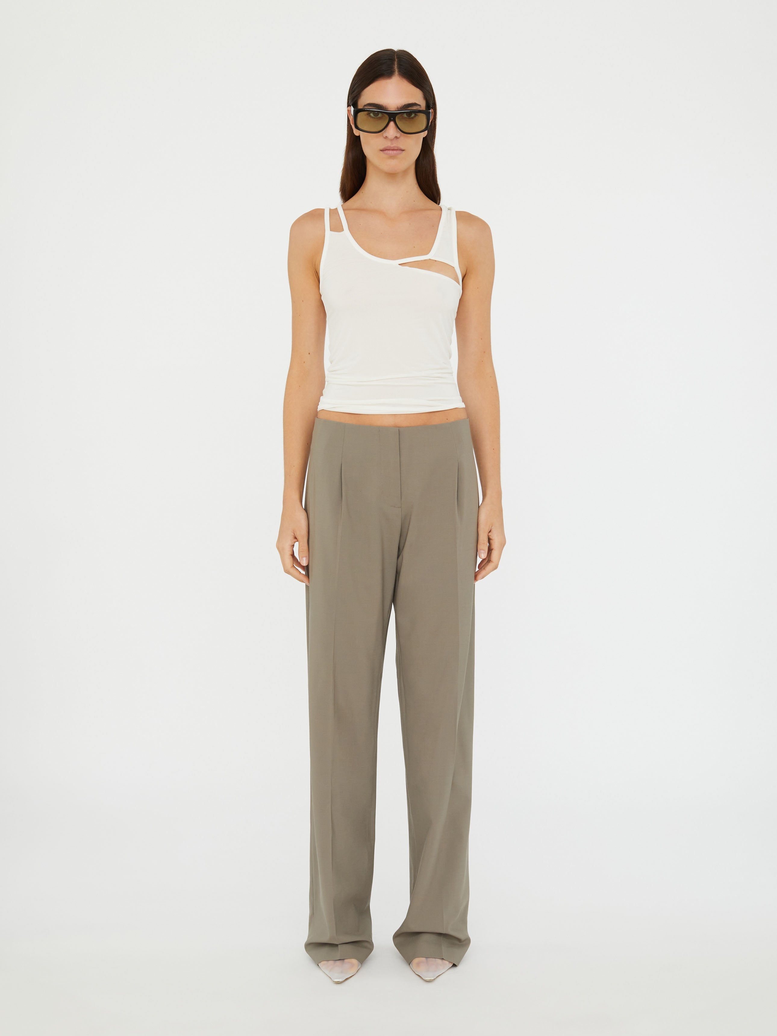 Streamlined minimalism meets asymmetry with this deconstructed tank top. Defined by signature cut out detailing.