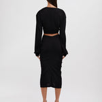 Nonchalant sensuality is explored through modern twist detailing. This midriff revealing cropped long sleeve is finished with emphasised drop shoulders.
