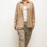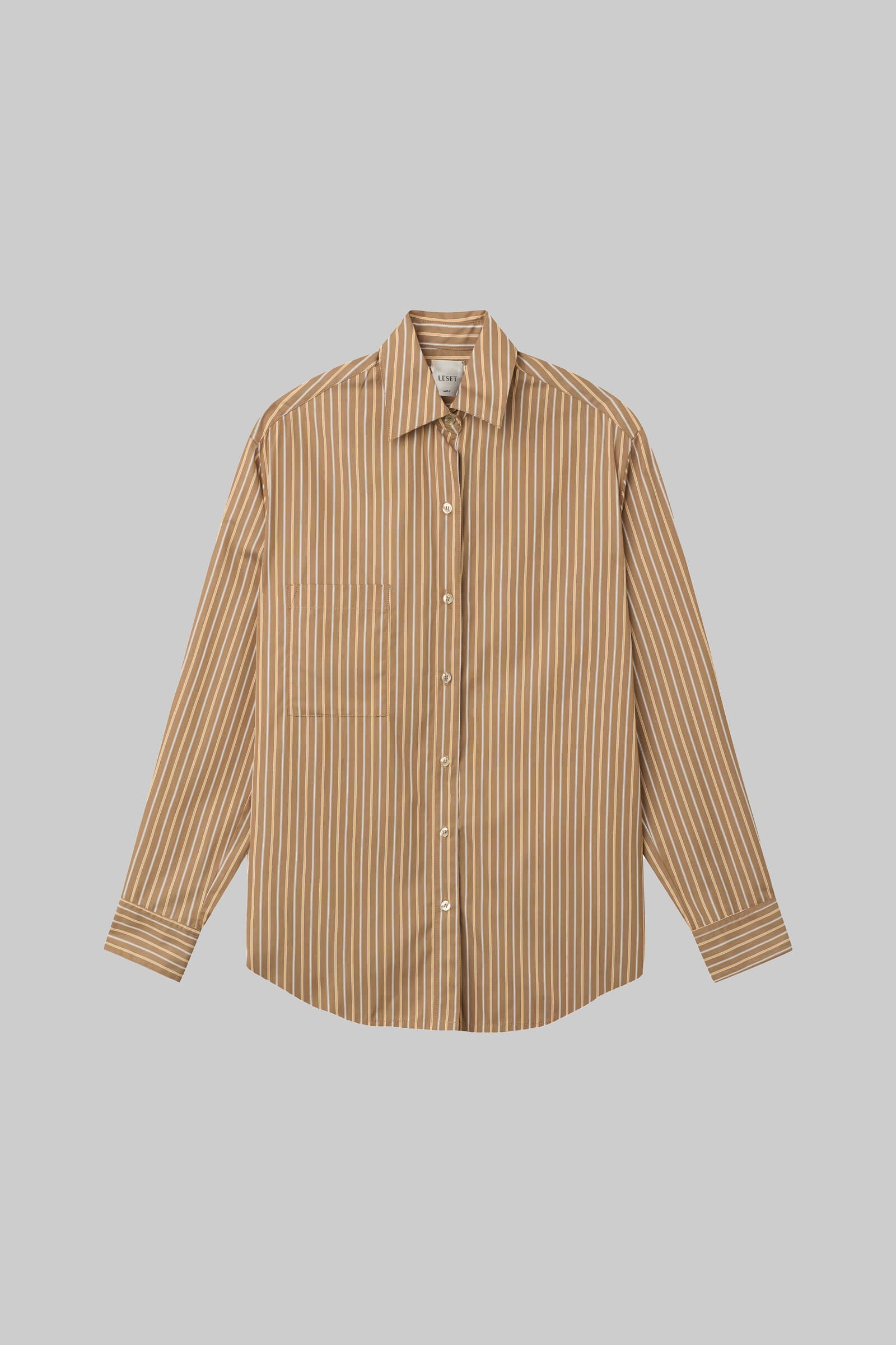 Cut in our striped Yoshi Cotton Twill, The Yoshi Classic Oversized Button Down features a classic pointed collar, curved hem, and a button front closure. Wear this buttoned up with matching Yoshi bottoms — or open over our any of The Classics.