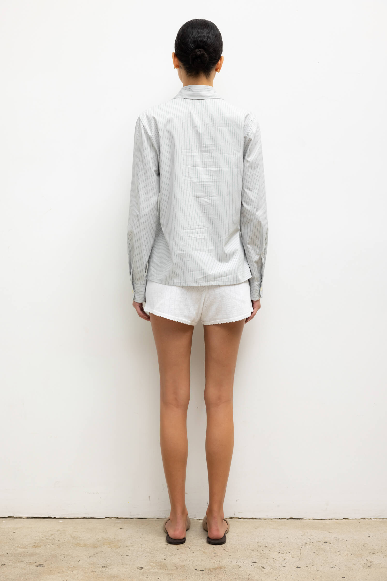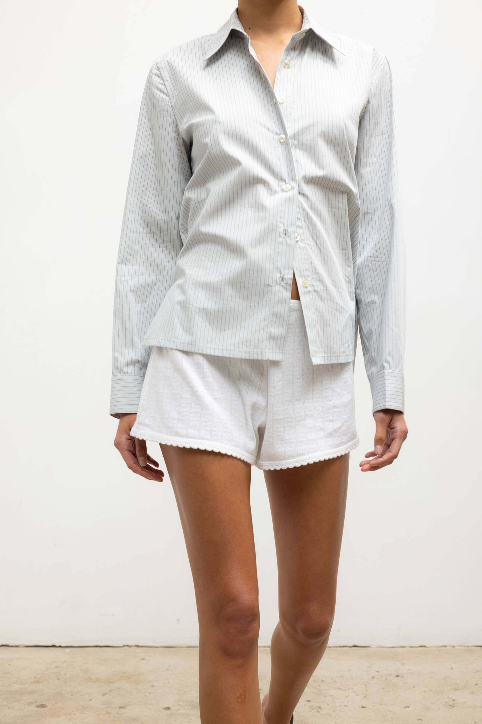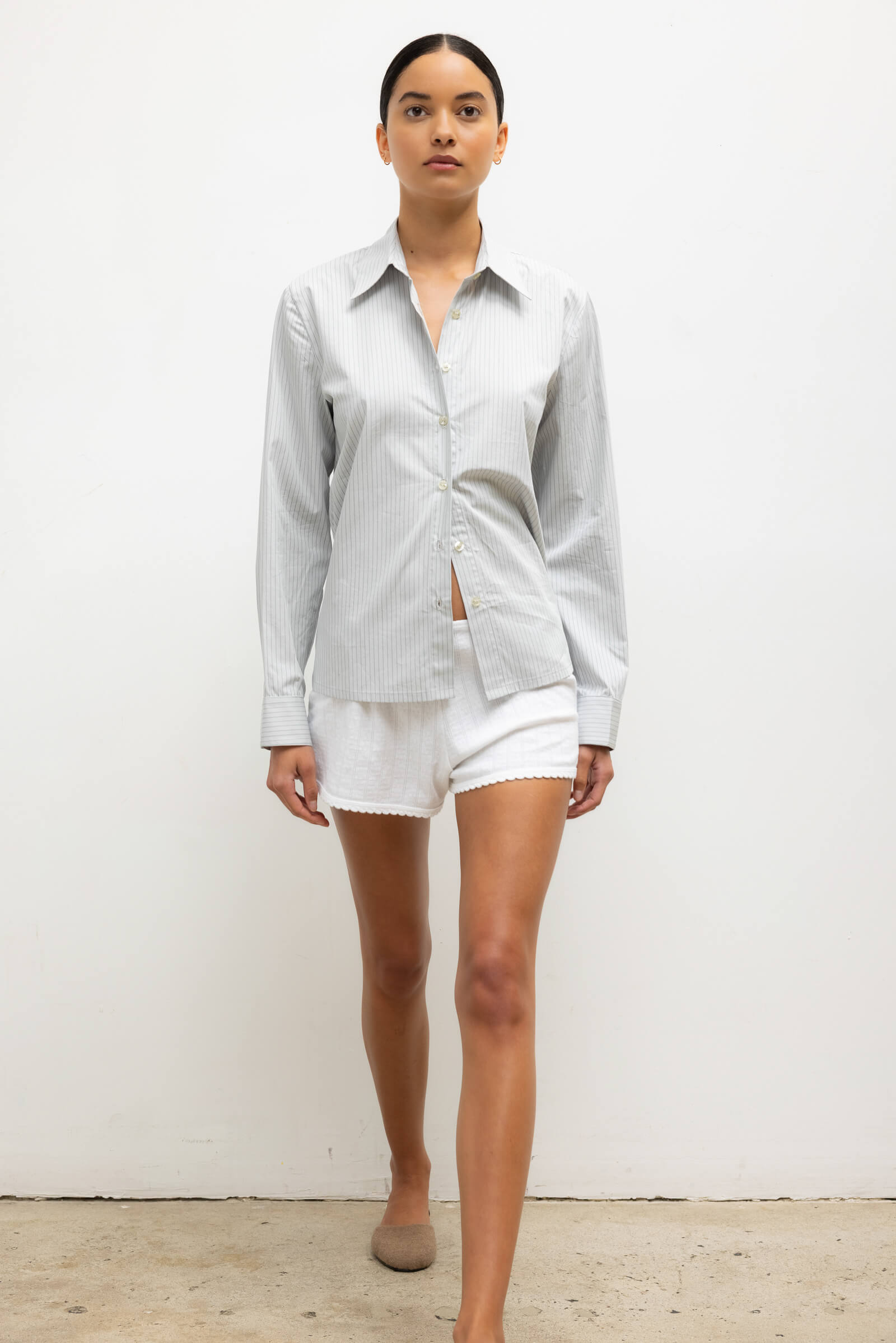 Cut in our Yoshi Cotton Twill, The Yoshi Slim Fit Button Down features a classic pointed collar, close fitting silhouette, and a button front closure. Make it a matching set with The Yoshi Classic Tie Pant or layered over sleeveless turtlenecks for added warmth this season.